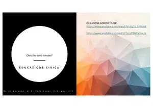 Slide di educazione civica sui musei e il patrimonio culturale. Il Pdf esplora i metodi di conservazione ed esposizione delle opere d'arte, con riferimenti a musei specifici e tecniche diagnostiche, per la scuola superiore.