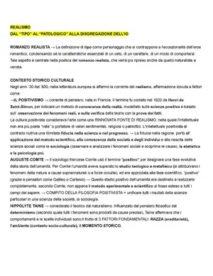 Documento da Università sul Realismo. Il Pdf, di Letteratura, esplora il Realismo e il Verismo, il contesto storico-culturale, il Positivismo e il Darwinismo Sociale, con un focus sulle opere di Verga come i Malavoglia.
