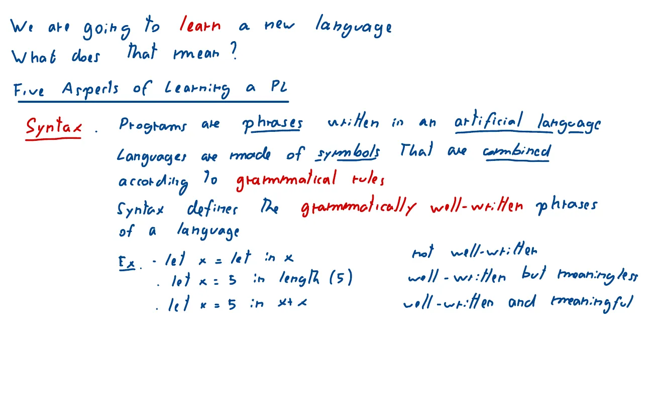 Syntax. Programs are phrases written in an artificial language Languages are made of symbols That are combined according To grammatical rules Syntax defines The grammatically well-written phrases of a language