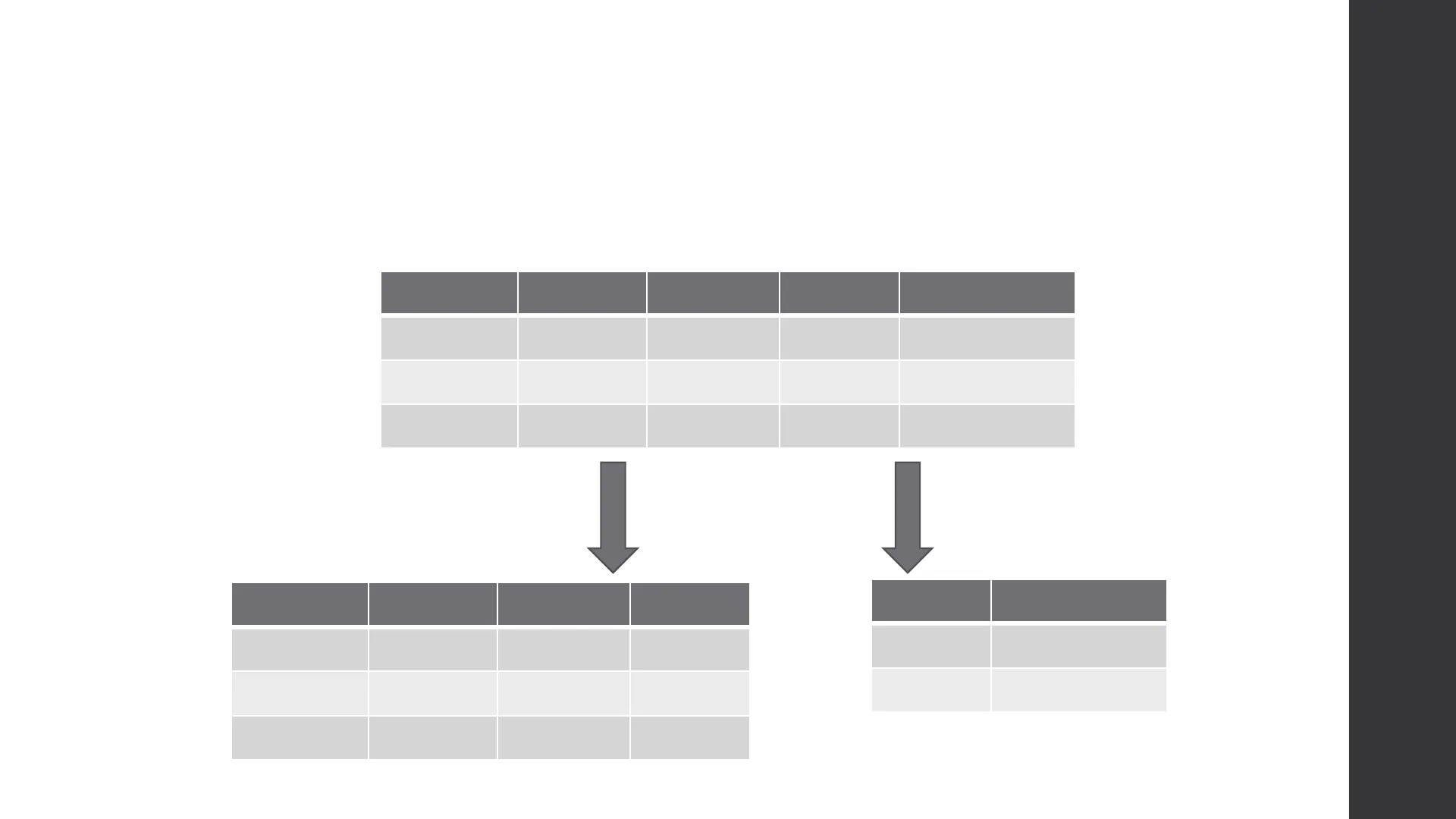 Emp Id Name Surname Dept Id Department 10095M James Abela 100 HR 19391M Andrew Grech 100 HR 38988M Anna Saliba 200 IT Emp Id Name Surname Dept Id 10095M James Abela 100 19391M Andrew Grech 100 38988M Anna Saliba 200 Dept Id Department 100 HR 200 ITBenefits of Normalisation?