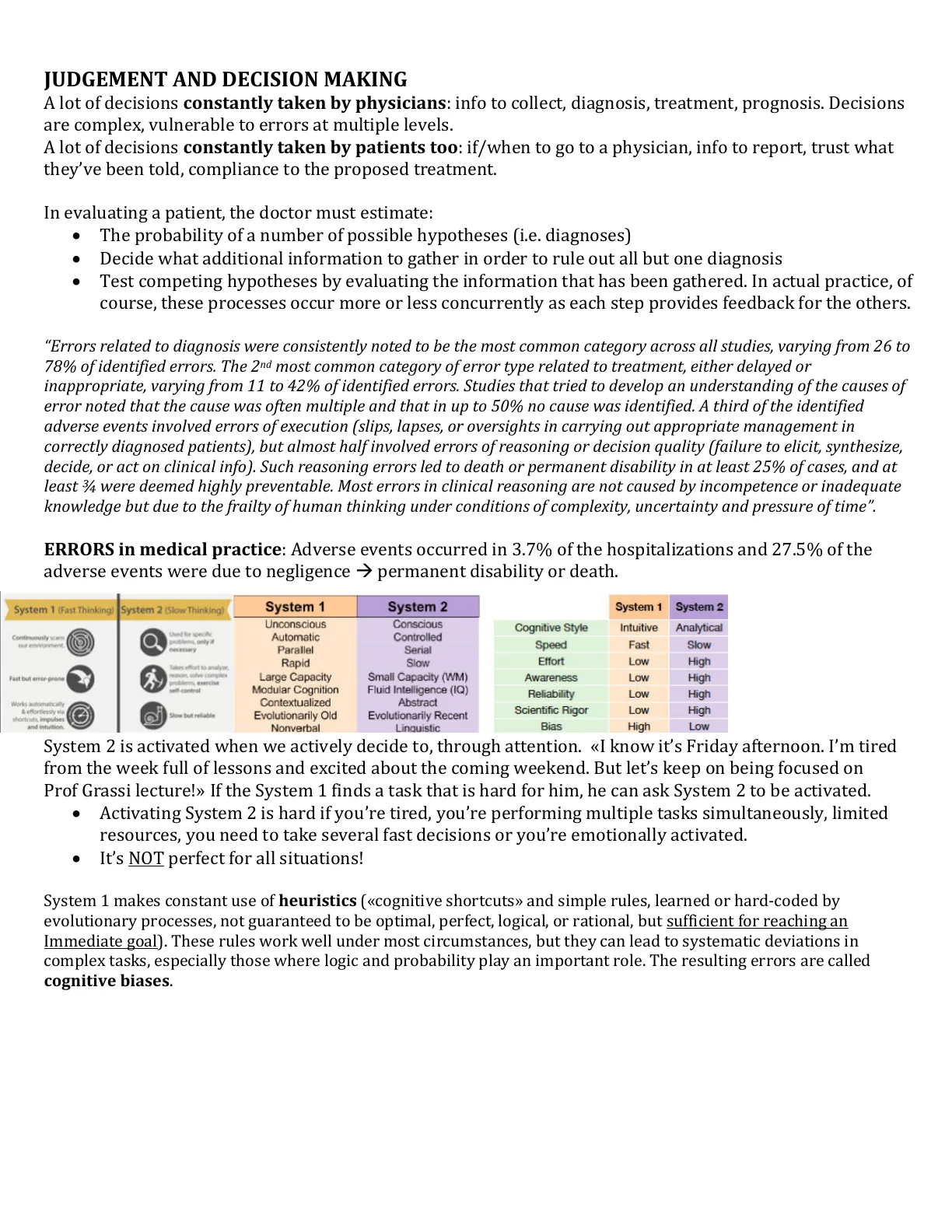 A lot of decisions constantly taken by physicians: info to collect, diagnosis, treatment, prognosis. Decisions are complex, vulnerable to errors at multiple levels.