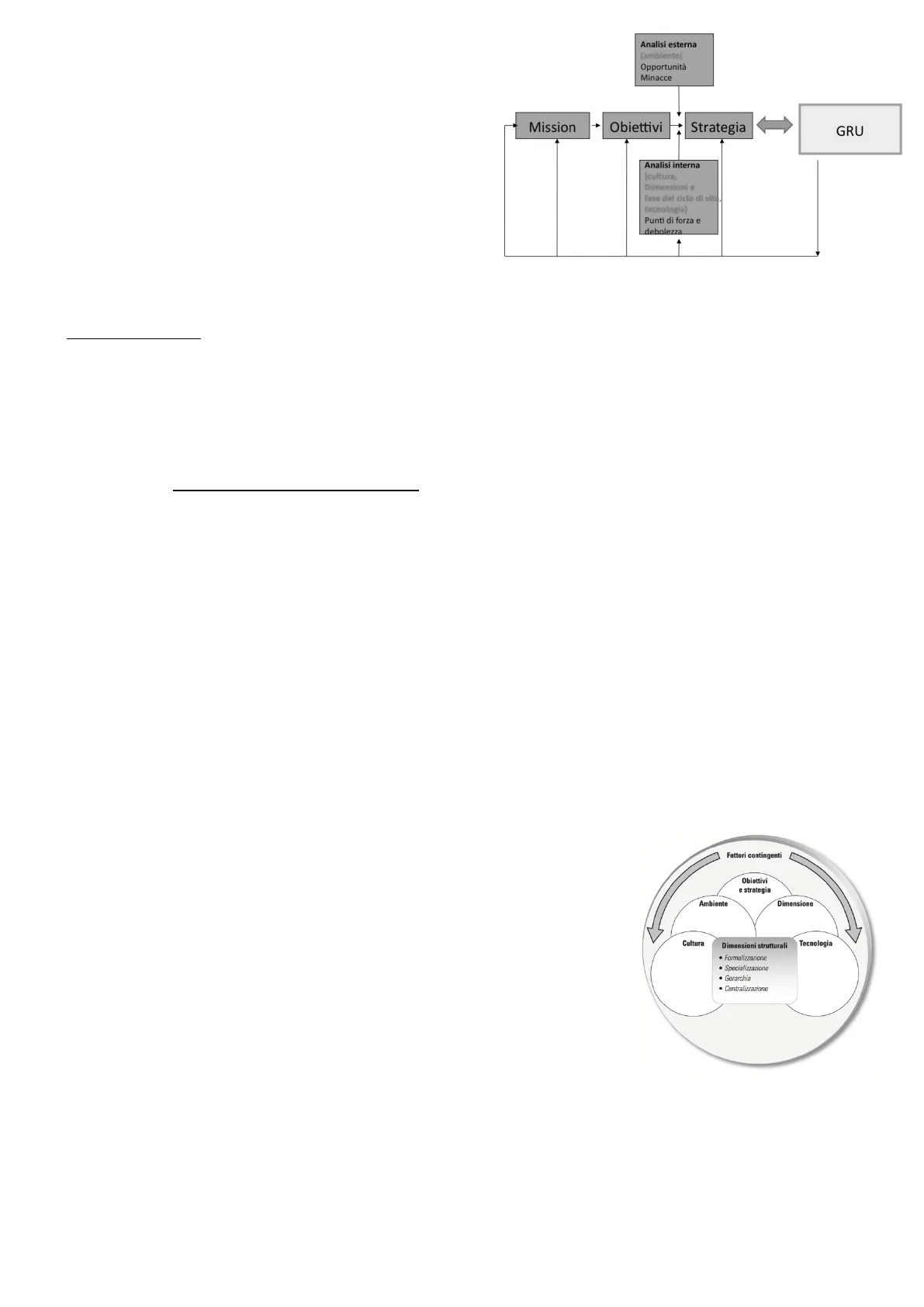 Fattori contingenti Obiettivi e strategia Ambiente Dimensione Cultura Dimensioni strutturali Tecnologia · Formalizzazione · Specializzazione · Gerarchia · Centralizzazione