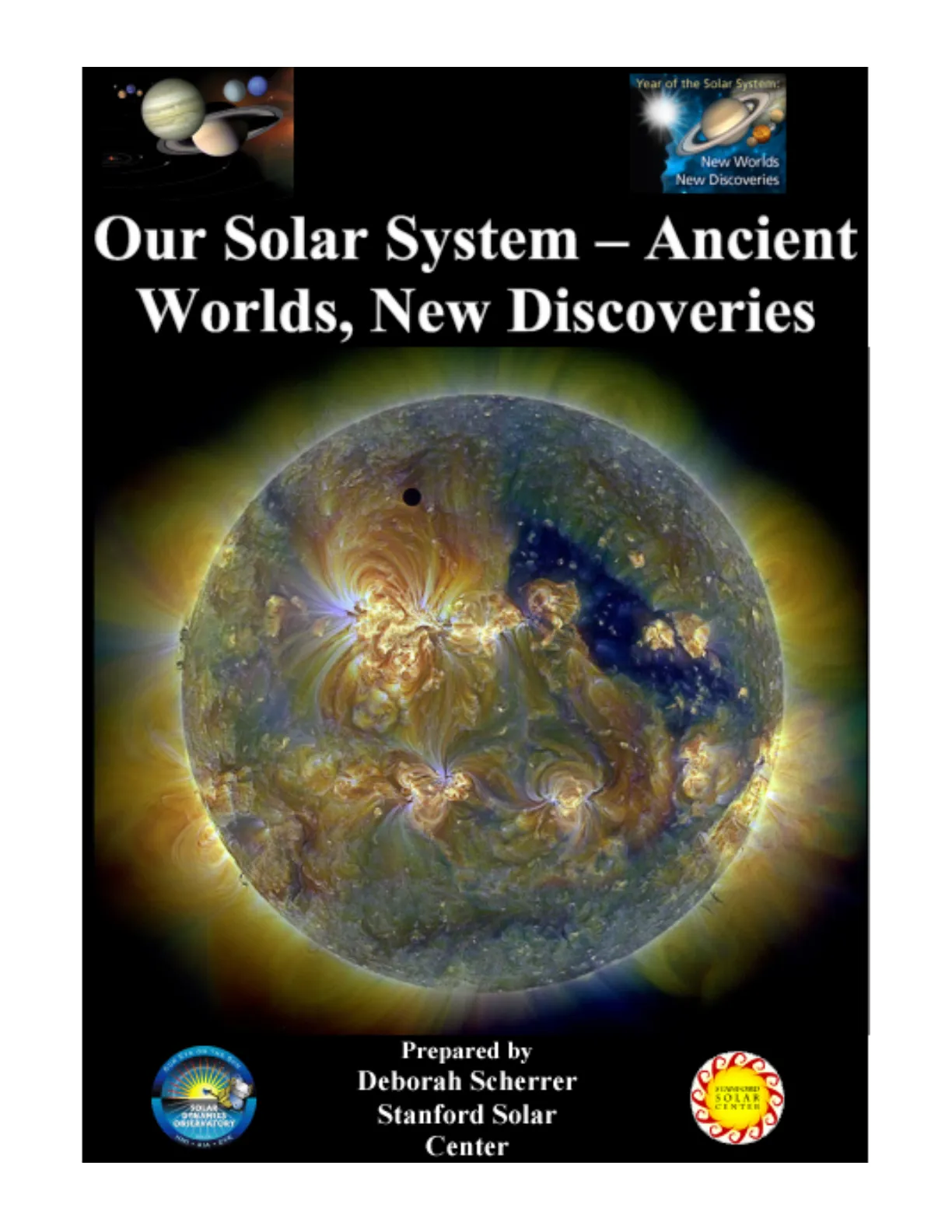 Slides from Stanford Solar Center about Our Solar System – Ancient Worlds, New Discoveries. The Pdf explores the solar system, concentrating on Venus and Earth, presenting scientific data and descriptions of their features for high school Science students.
