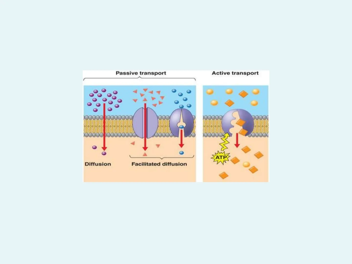 35Diffusion Passive transport Facilitated diffusion - ATP Active transport
