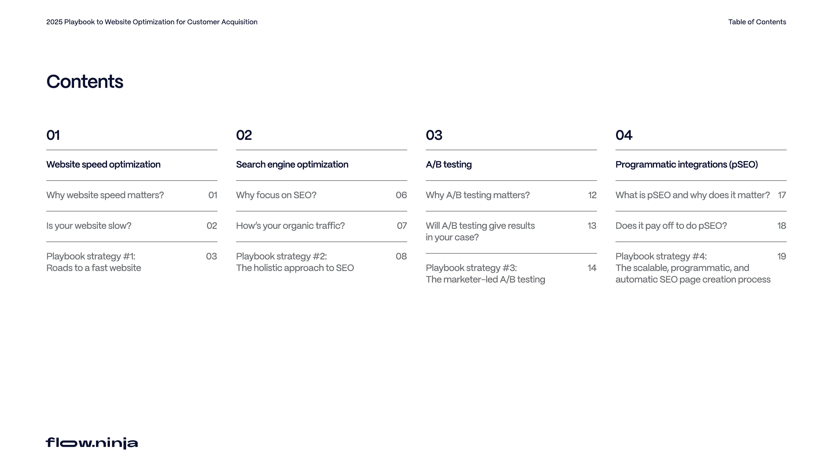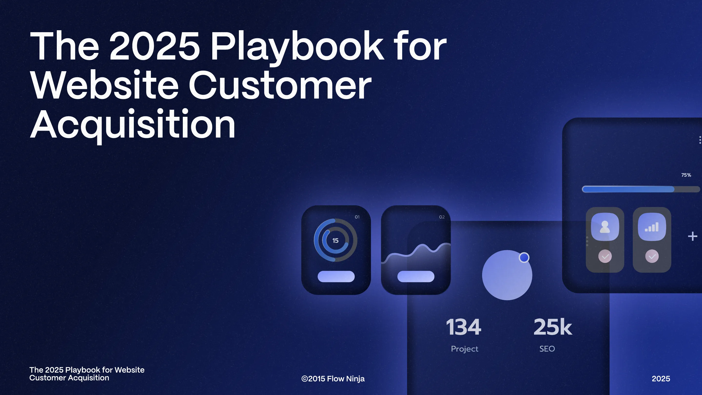 Slides about The 2025 Playbook for Website Customer Acquisition. The Pdf, a presentation for university students in Economics, outlines key strategies for digital marketing, including website speed optimization, SEO, A/B testing, and programmatic integrations.