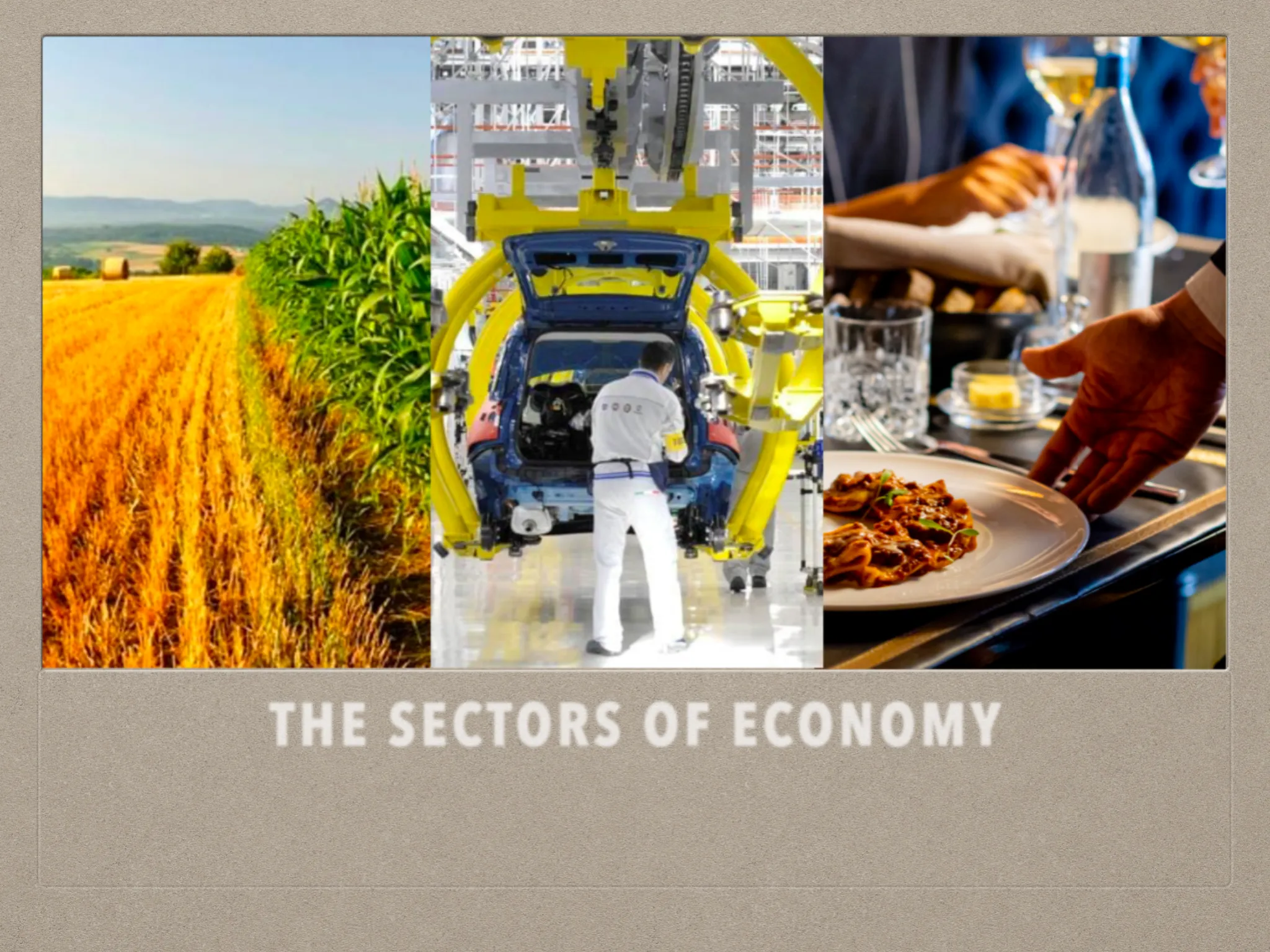 2.THE SECONDARY SECTOR: includes the TRANSFORMATION OF PRIMARY RESOURCES INTO ELABORATED PRODUCTS It includes both INDUSTRIAL PROCESSING (products that are the same as each other, in series) and CRAFTWORK (different products in limited quantities)