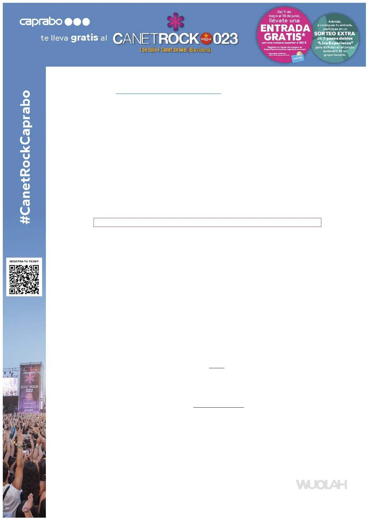 WUOLAH Reservados todos los derechos. No se permite la explotación económica ni la transformación de esta obra. Queda permitida la impresión en su totalidad. #CanetRockCaprabo REGISTRA TU TICKET CANETROCK 022 CALLARIA