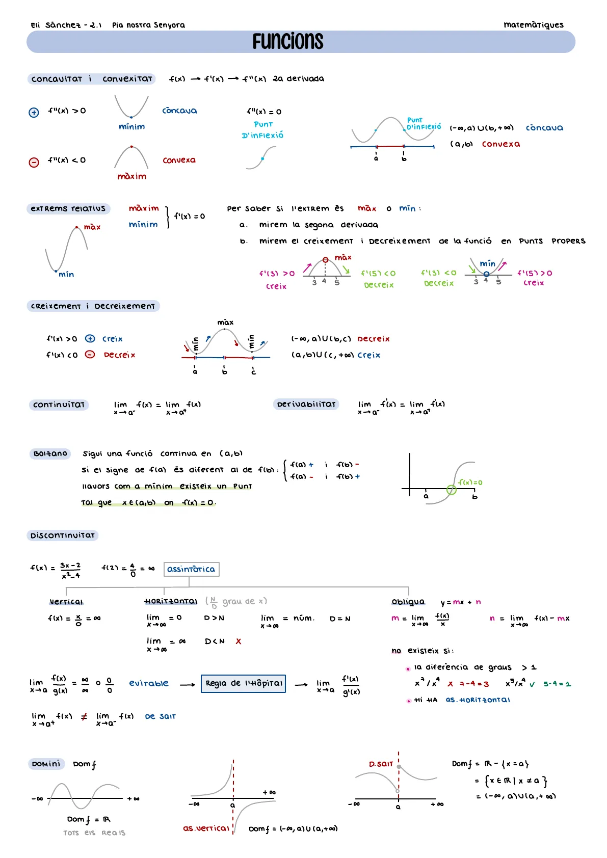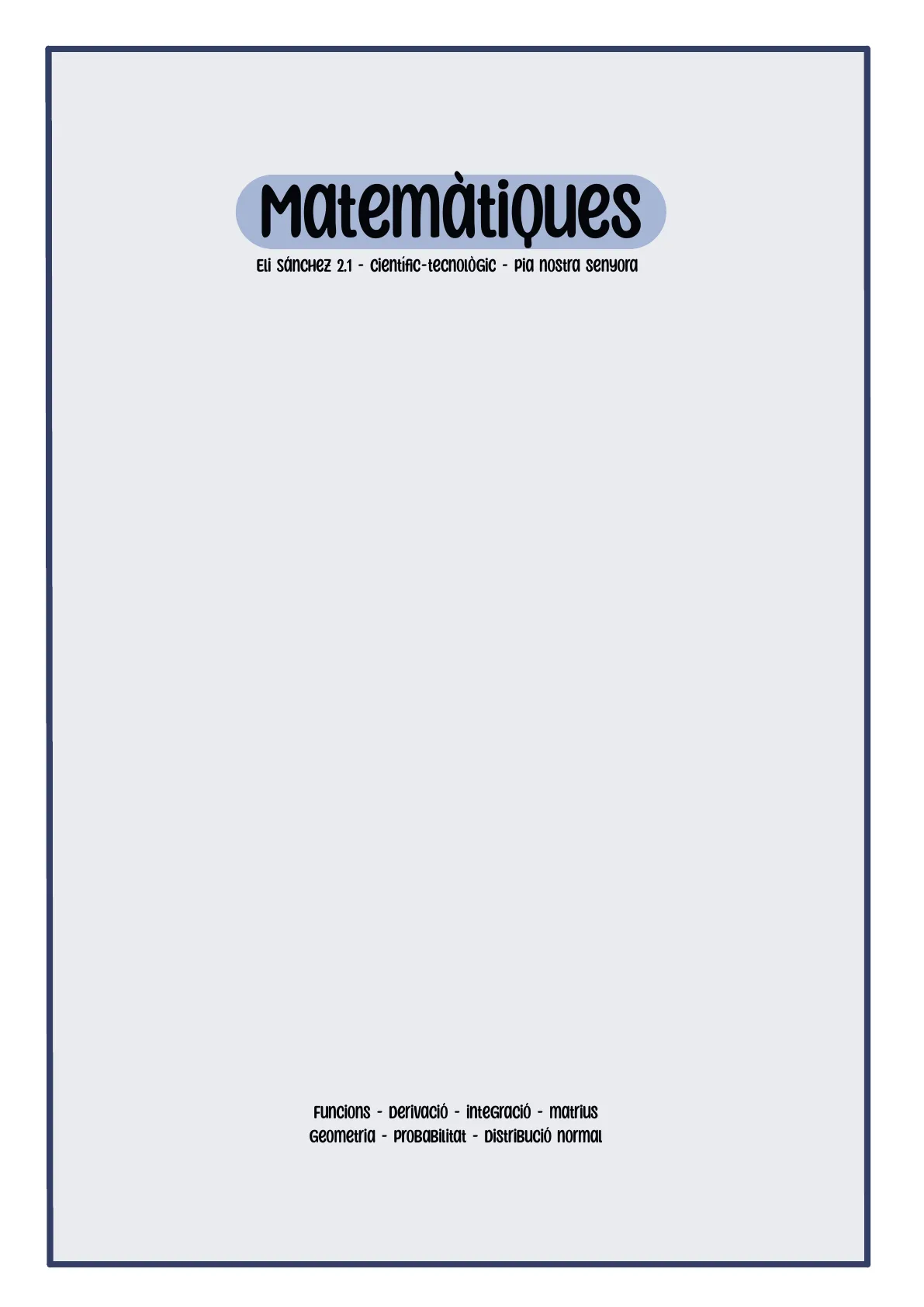 Document de Pia Nostra Senyora sobre Matemàtiques. El Pdf és un compendi d'apunts de matemàtiques per a la Universitat, que inclou seccions dedicades a funcions, derivades, integració, matrius i geometria, presentant definicions, fórmules i conceptes clau.
