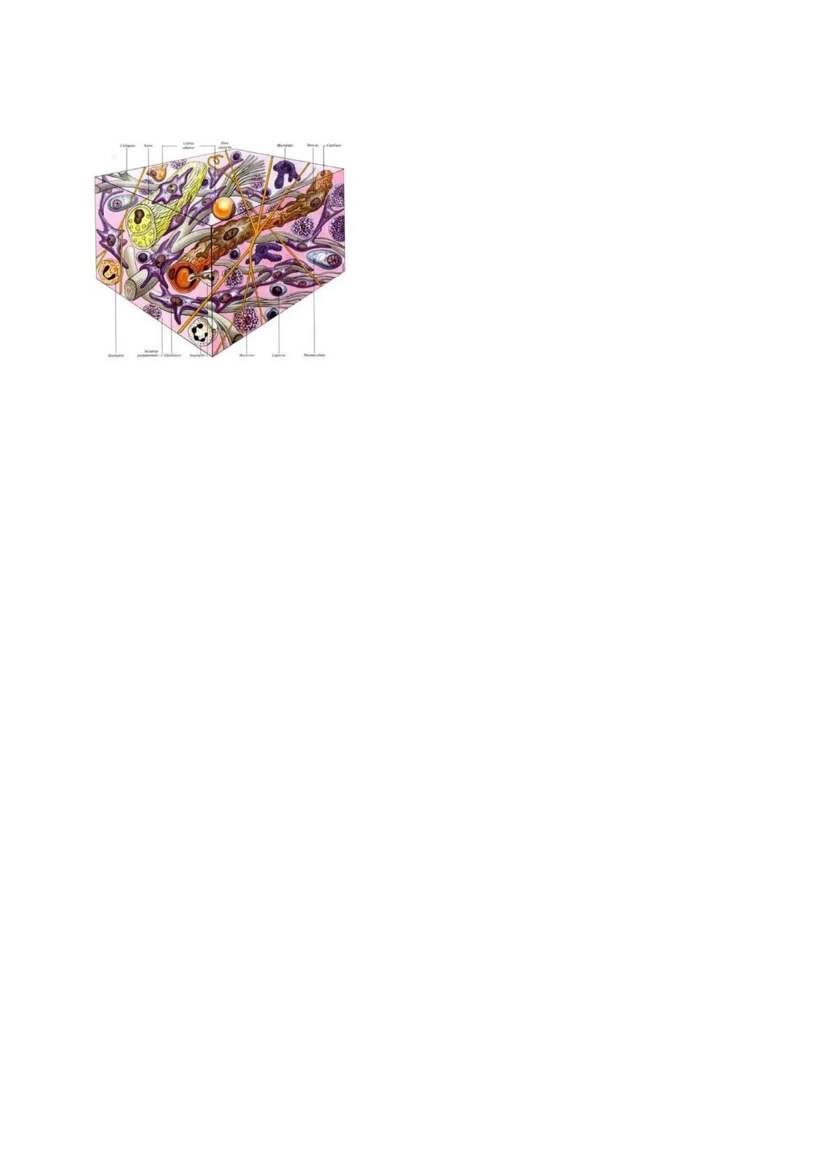 Le componenti amorfa e fibrillare fanno parte dello spazio extracellulare, esse sono importantissime in quanto conferiscono al tessuto la capacità di resistere, rispettivamente alle forze di compressione (componente amorfa) e alle forze di trazione (componente fibrillare).