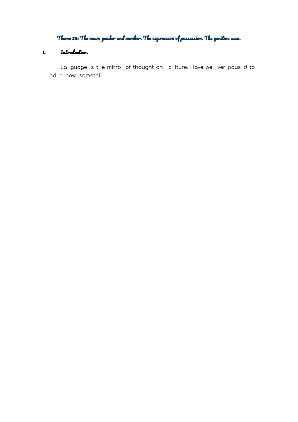 Document from University about The Noun: Gender and Number, The Expression of Possession, The Genitive Case. The Pdf, a detailed academic text for university students in Languages, explores noun inflection, gender, and the Saxon genitive, providing examples and explanations.