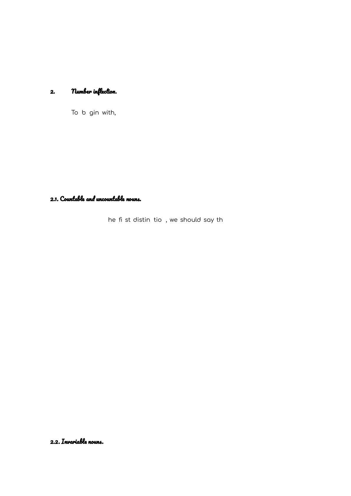 There are two important considerations when dealing with the grammatical category of number in nouns: the distinctions between countable/uncountable and variable/invariable.