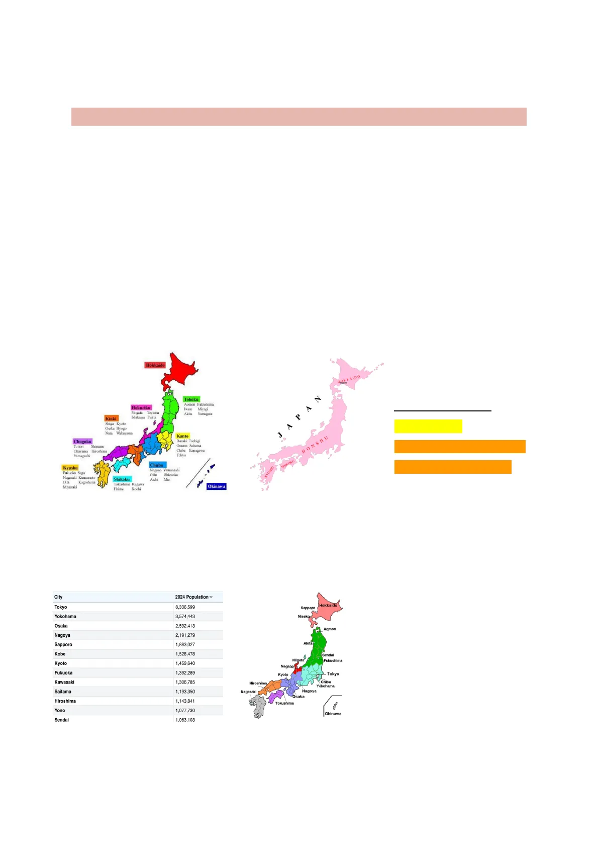 KYUSHU Fukuoka Saga Nagasaki Kumamoto Oita Kagoshima Miyazaki Shikoku Nagano Yamanashi Gifu Shizuoka Aichi Mis Tokushima Kagawa Fhime Koch Okinawa IMPORTANT REGIONS Hokuriku Niigata Toyama Ishikawa Fukui JAPAN Kanto -> Tokyo Tottori Shimane Okayama Hiroshima Yamaguchi Chube Kyushu SHIKOKU O HONSHU Hokkaido Yokohama 3,574,443 Niigata Osaka