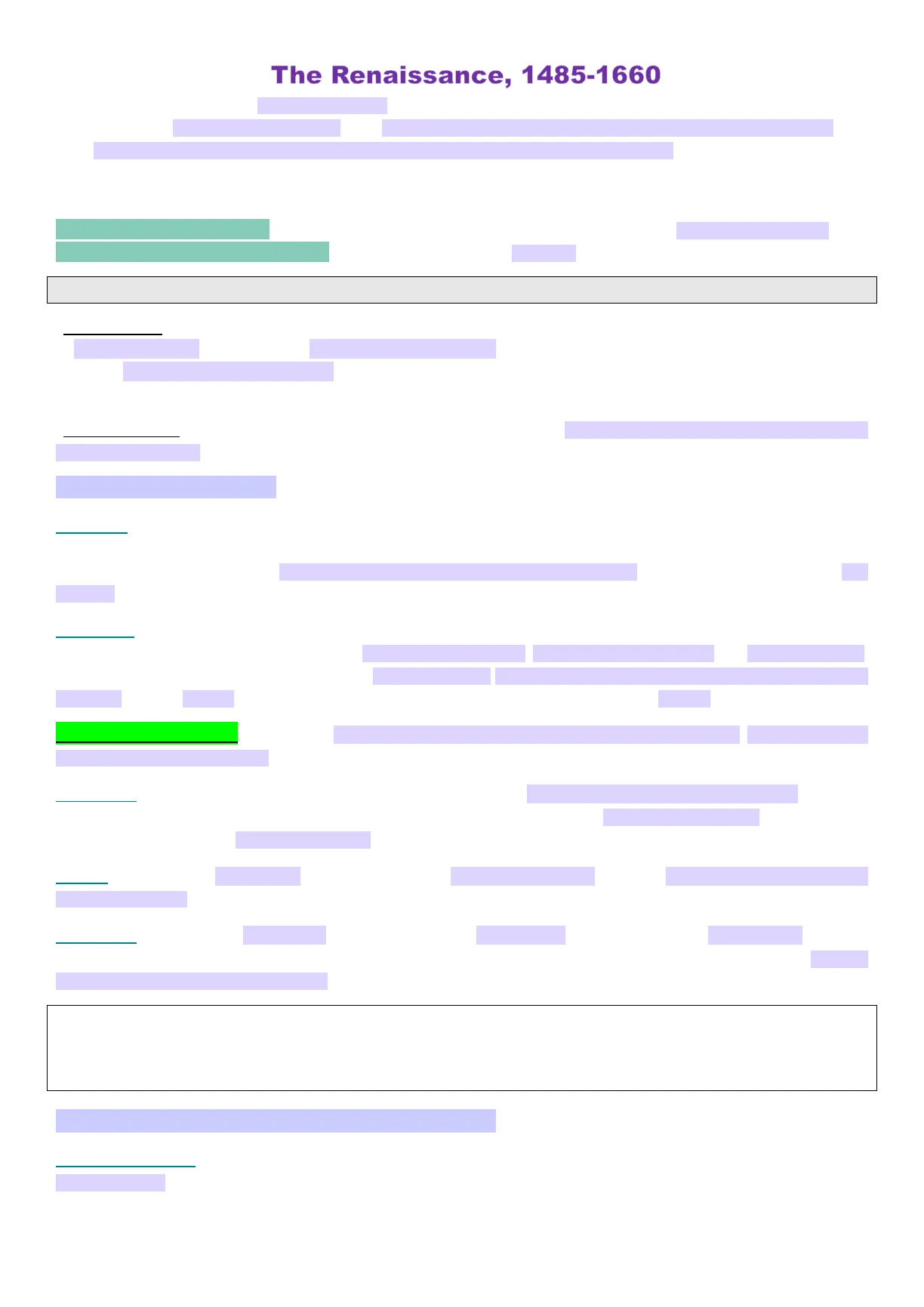 Document from University about The Renaissance, 1485-1660. The Pdf covers the English Renaissance (1485-1660), analyzing the Tudor dynasty and early Stuarts, religious, political, and social transformations, economic issues, and cultural context for History students.