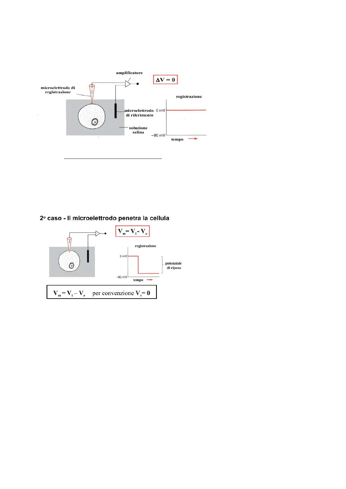 Nella cellula la questione della misurazione della differenza potenziale non è così semplice perché la cellula è inserita in una soluzione acquosa quindi non si possono semplicemente mettere i puntali nella cellula. si utilizzano così dei microelettrodi tipicamente se ne utilizza una coppia uno posto esternamente alla cellula e uno invece posto internamente alla cellula.