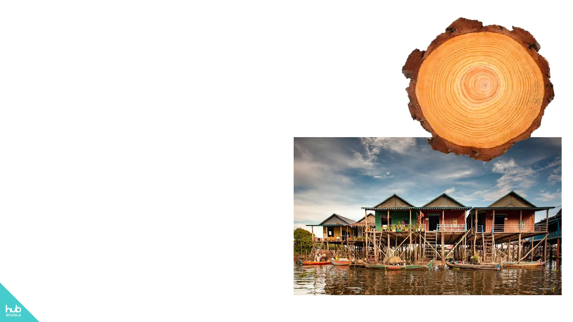 Slide da Hub Scuola su I materiali. Il Pdf, adatto per la scuola media e la materia di Tecnologia, esplora il mondo dei materiali, con un focus specifico sul legno, le sue proprietà, le fasi della lavorazione in segheria e la produzione di semilavorati come il legno massello e lamellare.