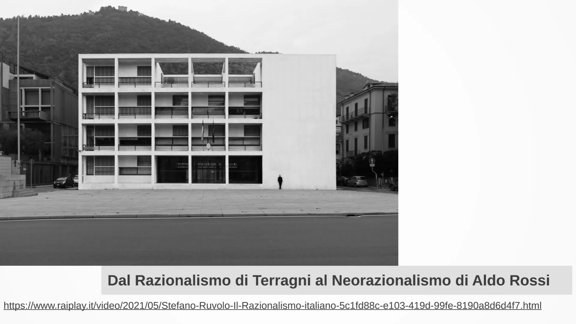 dagli ANNI 20 agli anni 90 Paola Villamarino Sibil CiceroDal Razionalismo di Terragni al Neorazionalismo di Aldo Rossi https://www.raiplay.it/video/2021/05/Stefano-Ruvolo-II-Razionalismo-italiano-5c1fd88c-e103-419d-99fe-8190a8d6d4f7.html