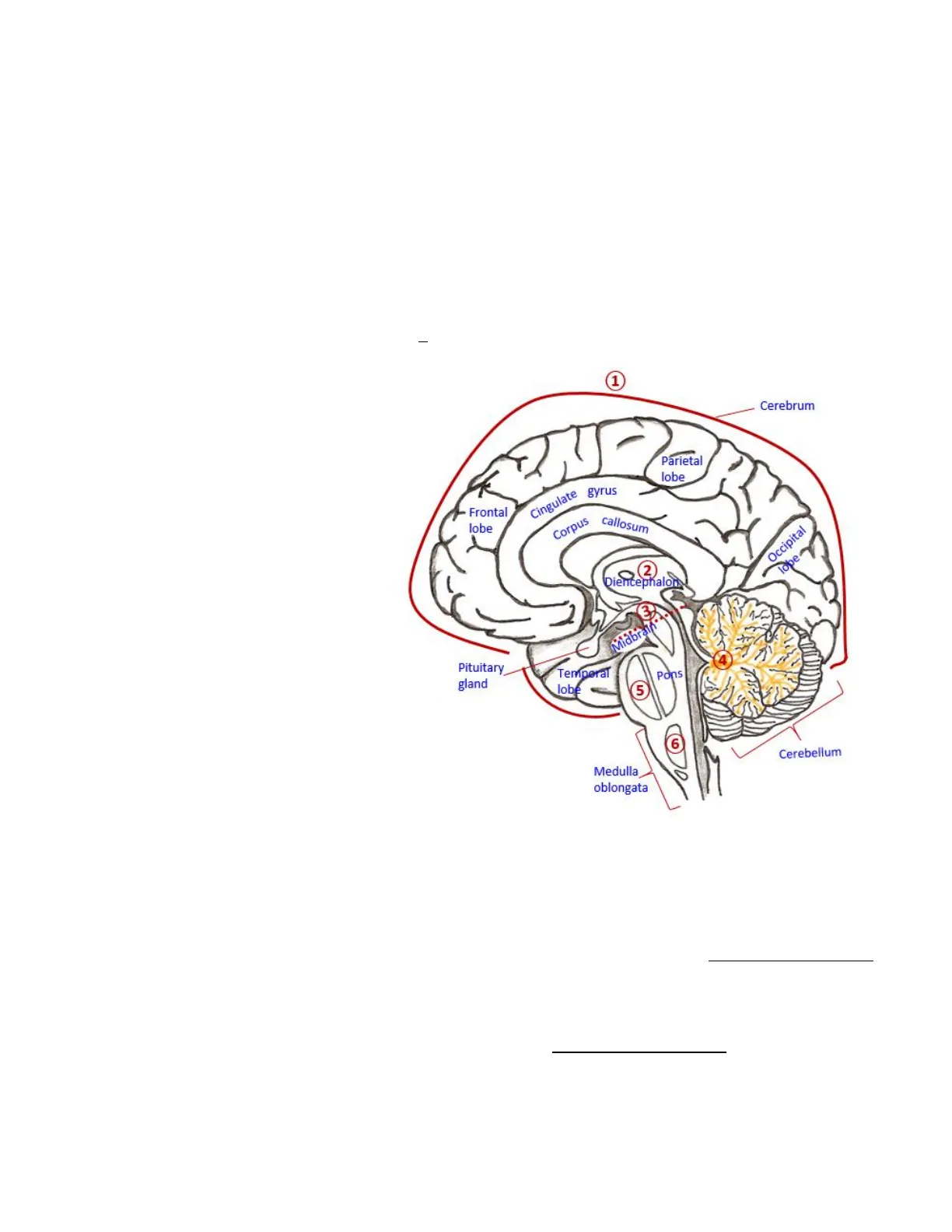 1 Cerebrum Parietal lobe Cingulate gyrus Frontal lobe Corpus callosum Occipital lobe 2 0 Diencephalon 3 Miabrann. Pituitary gland Pons Temperat lobe 5 6 Cerebellum Medulla oblongata