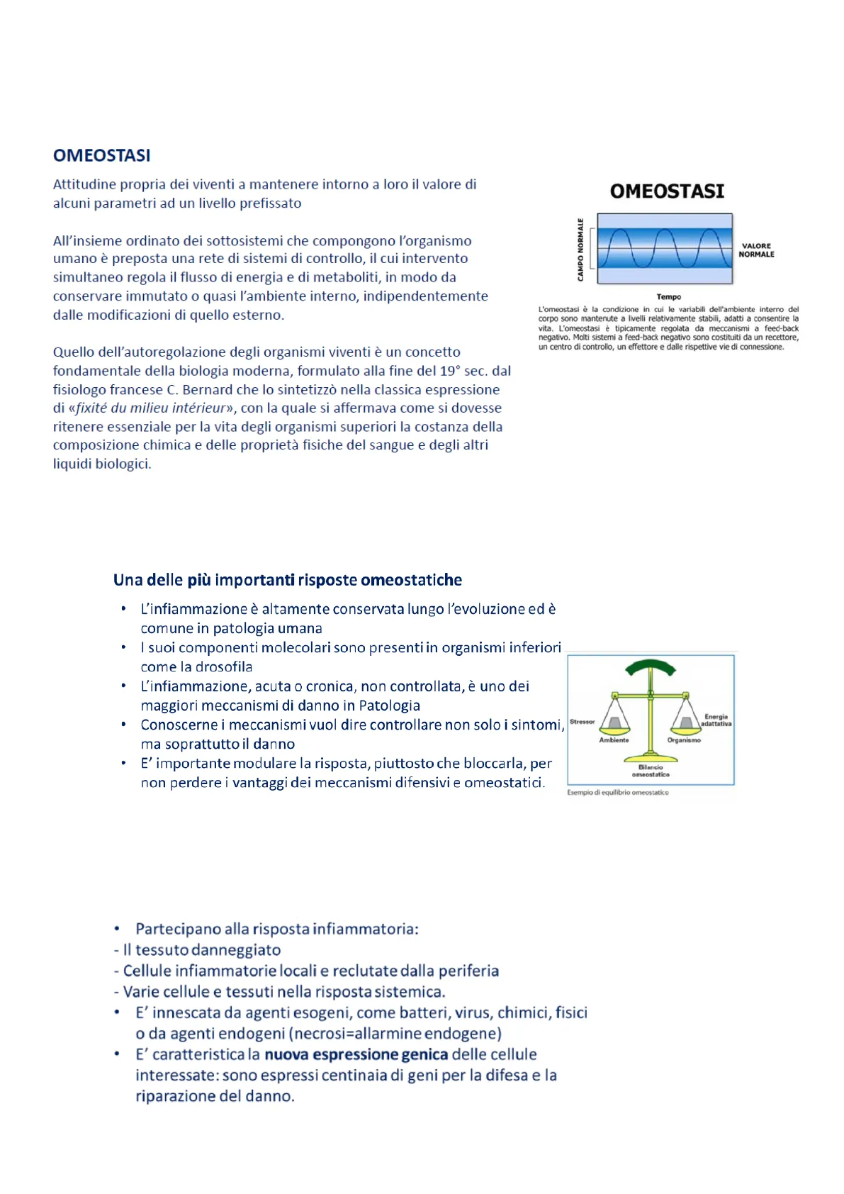 Slide sulla risposta infiammatoria: difensiva e riparativa – parte 1. Il Pdf esplora l'omeostasi e l'infiammazione acuta e cronica, con focus sui meccanismi molecolari e cellulari. Questo documento di Biologia per l'Università è utile per lo studio autonomo.