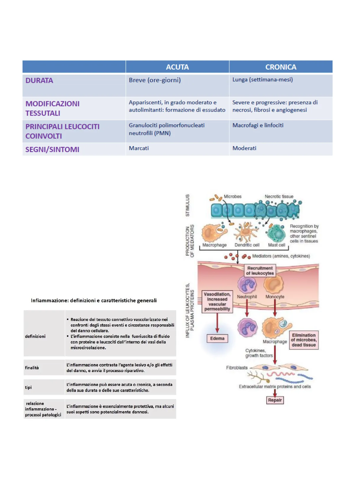 | PRINCIPALI LEUCOCITI COINVOLTI | Granulociti polimorfonucleati neutrofili (PMN) | Macrofagi e linfociti |