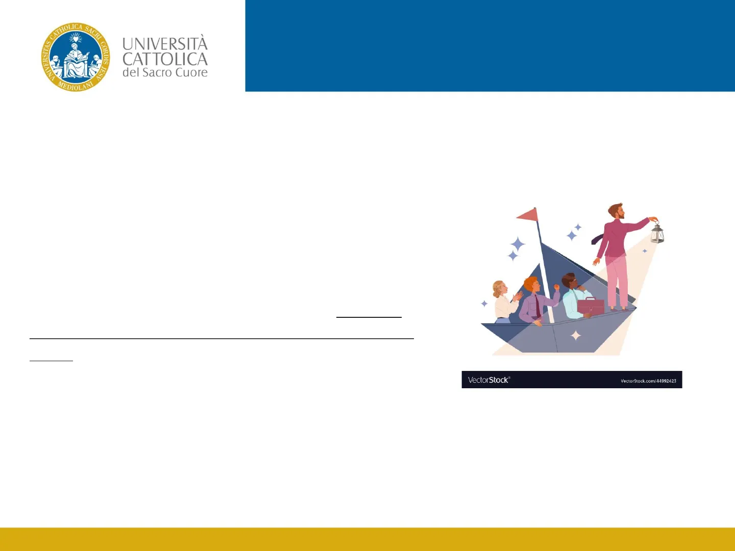 SACRI RI CORDIS JESV UNIVERSITÀ CATTOLICA del Sacro Cuore MEDIOLANI What is leading (Reminder from last lesson) Leading means inspiring and motivating individuals, teams to perform at their best. This involves projecting a strong sense of direction and leadership when setting goals and communicating new processes, products and services, or internal policy. Bosses tell people what to do, while leaders motivate people to contribute in meaningful ways. It requires leaders to do more than simply give orders, even though tasks must be completed for business success. Motivating teams through guided leadership communicated in clear ways is today the key differentiator between being a boss and being a leader VectorStock® VectorStock.com/44992423 2
