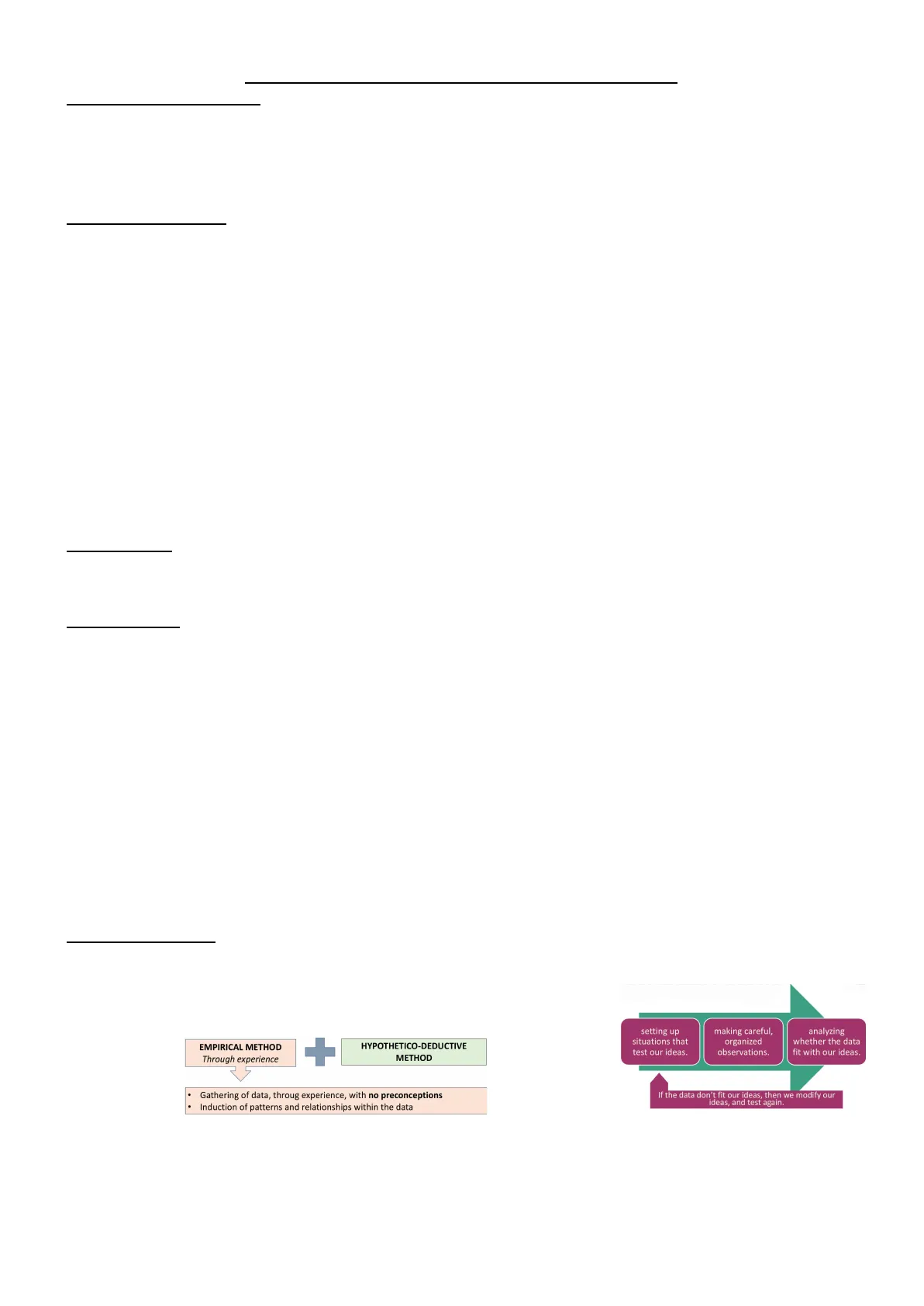 Science is a way of thinking that leads us towards testable explanations of what we observe in the world around us. Scientific research does not prove theories true, it exposes different explanations. The scientific method is the process of testing our ideas about the world by: EMPIRICAL METHOD Through experience + HYPOTHETICO-DEDUCTIVE METHOD · Gathering of data, throug experience, with no preconceptions Induction of patterns and relationships within the data setting up situations that test our ideas. making careful, organized observations. analyzing whether the data fit with our ideas. If the data don't fit our ideas, then we modify our ideas, and test again.