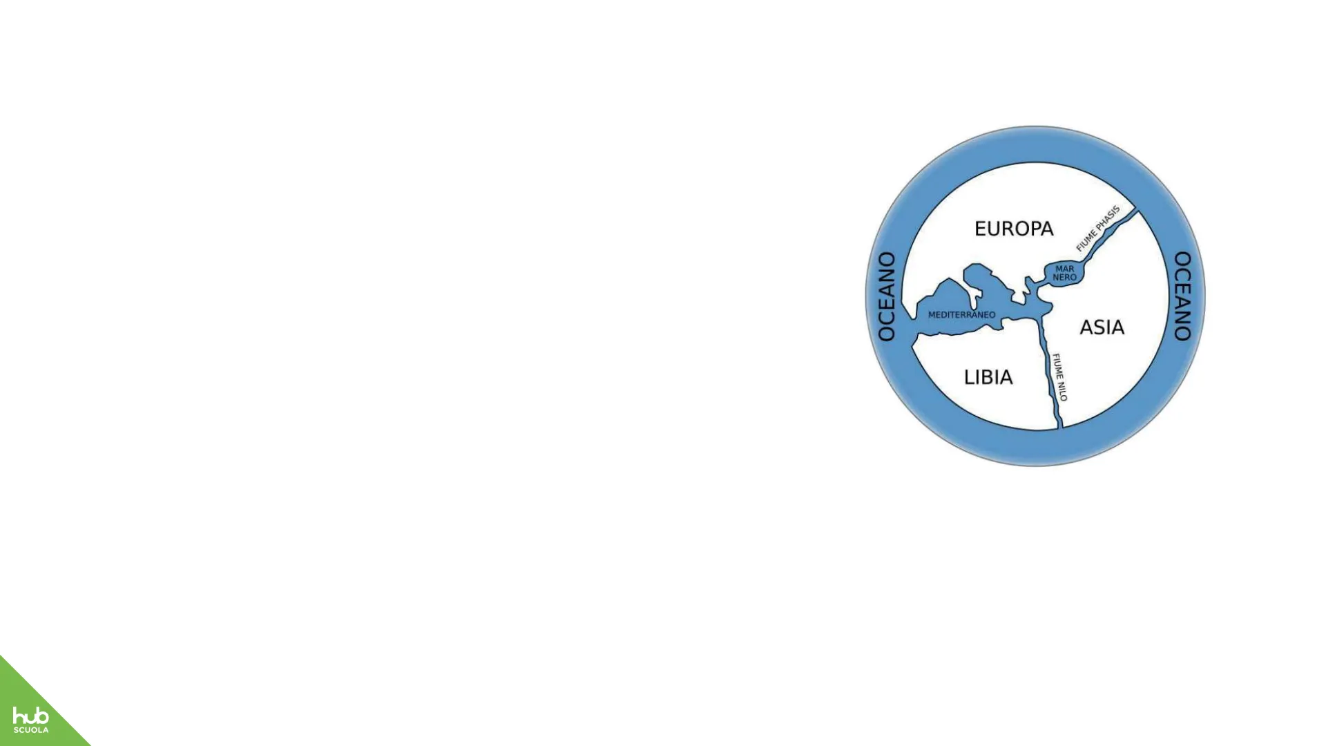 EUROPA FIUME PHASIS OCEANO MAR NERO MEDITERRANEO OCEANO ASIA LIBIA FIUME NILO La Terra di Anassimandro di Mileto (586-528 a.C. circa) ha la forma di un disco piatto circondato da un oceano.