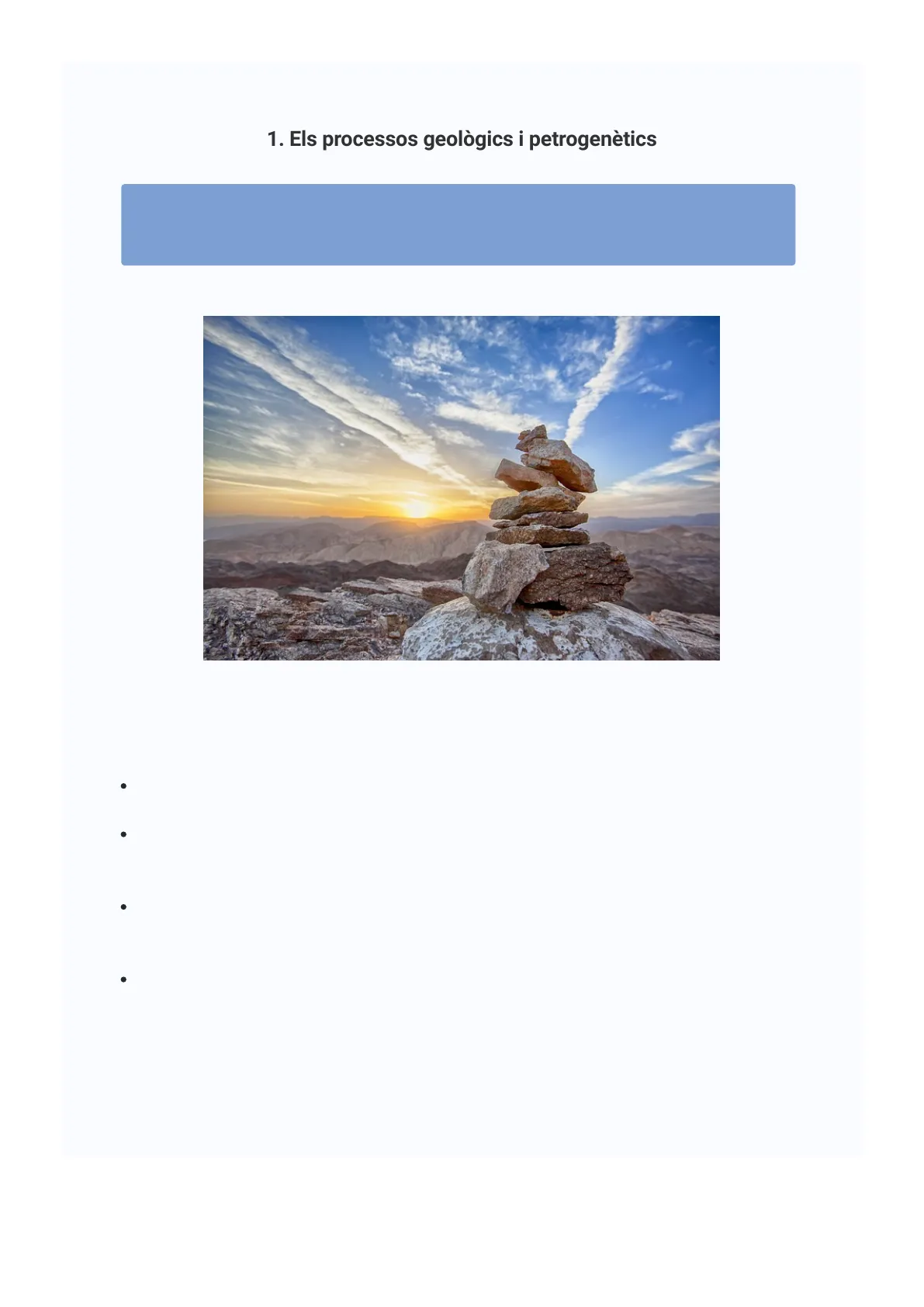 1. Els processos geologics i petrogenètics 8. Els processos geològics i petrogenètics Font: Pixabay En aquest tema es tractaran els següents continguts: