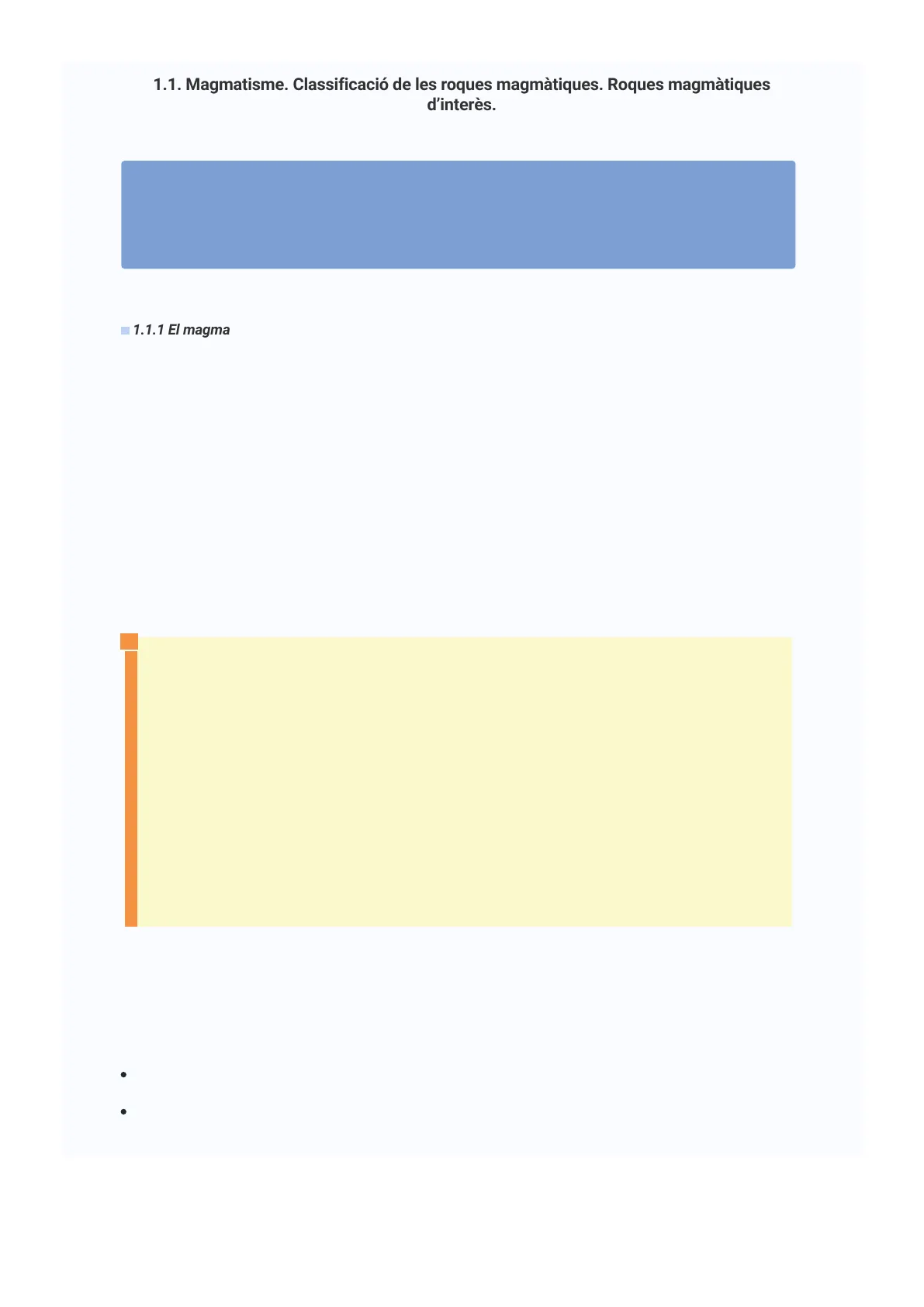 1.1. Magmatisme. Classificació de les roques magmatiques. Roques magmatiques d'interès. 1.1 Magmatisme. Classificació de les roques magmatiques. Roques magmatiques d'interès