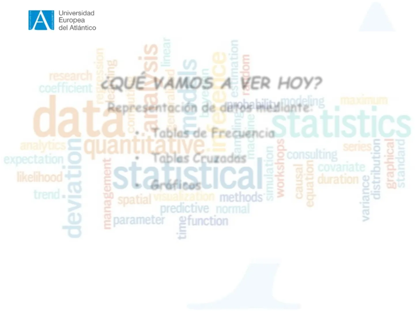 data. Tablas de FrecuenciaStatistics Representación de datos mediante: g maximum analytics series Tablas Cruzadas consulting expectation likelihood covariate duration quantit ve ma Stical St Gráficos simulation workshops causal equationg distribution variance graphical standard trend deviation management 0 spatial visualization methods* predictive normal parameter @function timeA Universidad Europea del Atlántico
