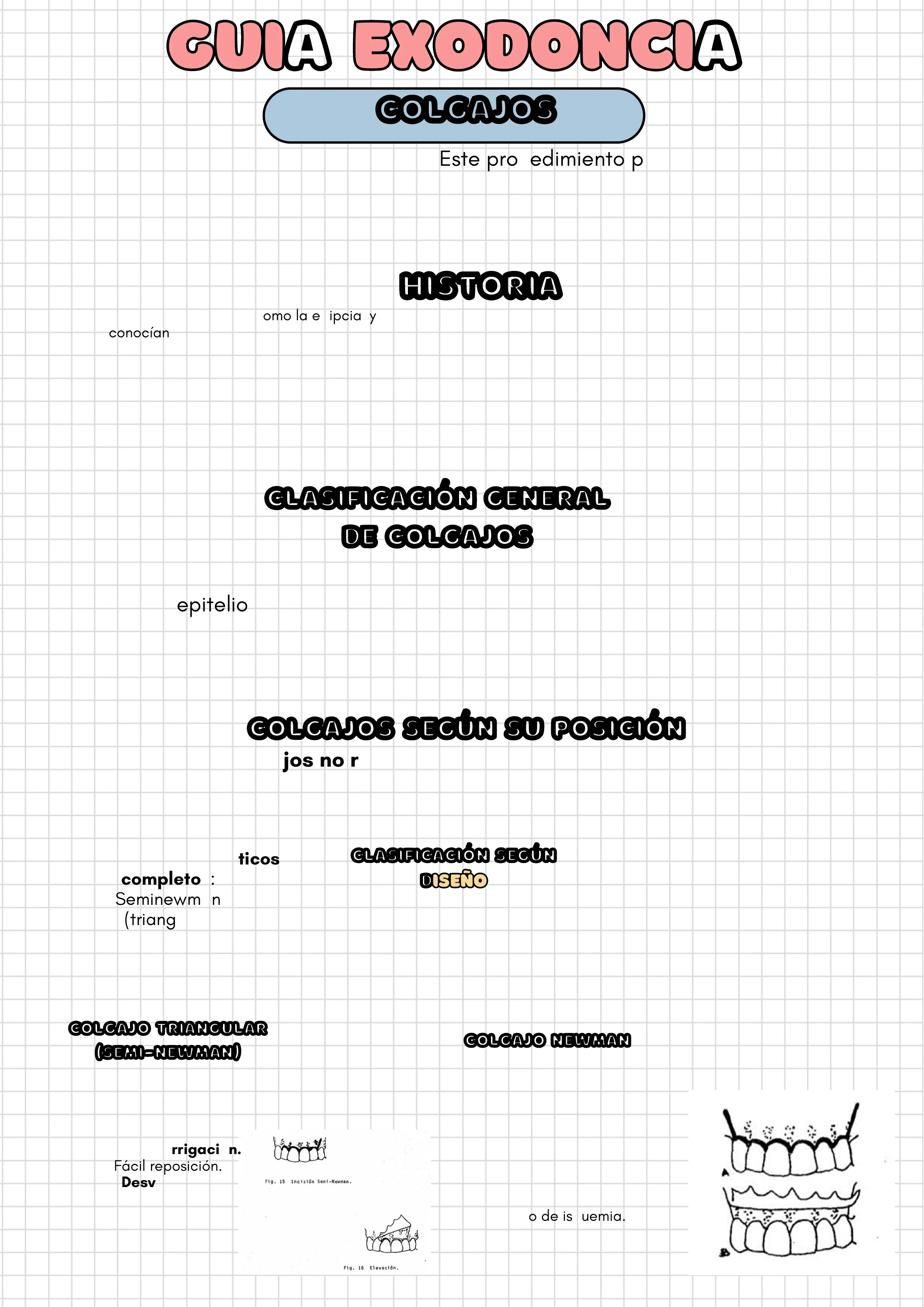 Esquemas de Universidad sobre Guia Exodoncia. Los Resúmenes abordan la cirugía oral, incluyendo colgajos y tumores odontogénicos, con definiciones y clasificaciones. Este material es ideal para estudiantes universitarios de odontología que buscan un repaso conciso y esquemático.