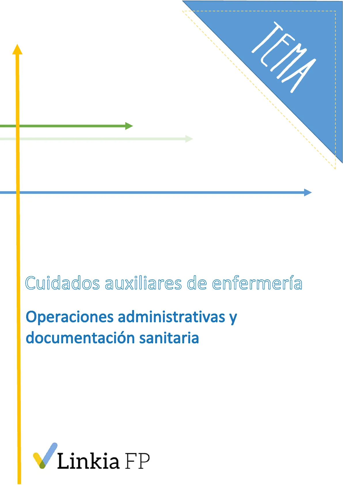 Documento de Linkia FP sobre cuidados auxiliares de enfermería: operaciones administrativas y documentación sanitaria. El Pdf, un módulo didáctico digital, aborda los profesionales sanitarios, sus funciones y las operaciones administrativas, siendo útil para estudiantes de formación profesional.