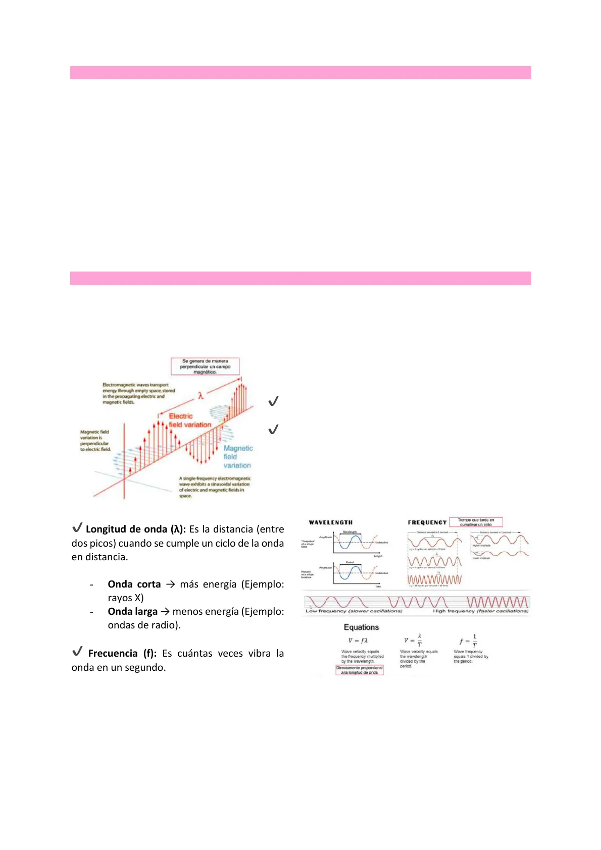 - Onda corta > más energía (Ejemplo: rayos X) - Onda larga -> menos energía (Ejemplo: ondas de radio).