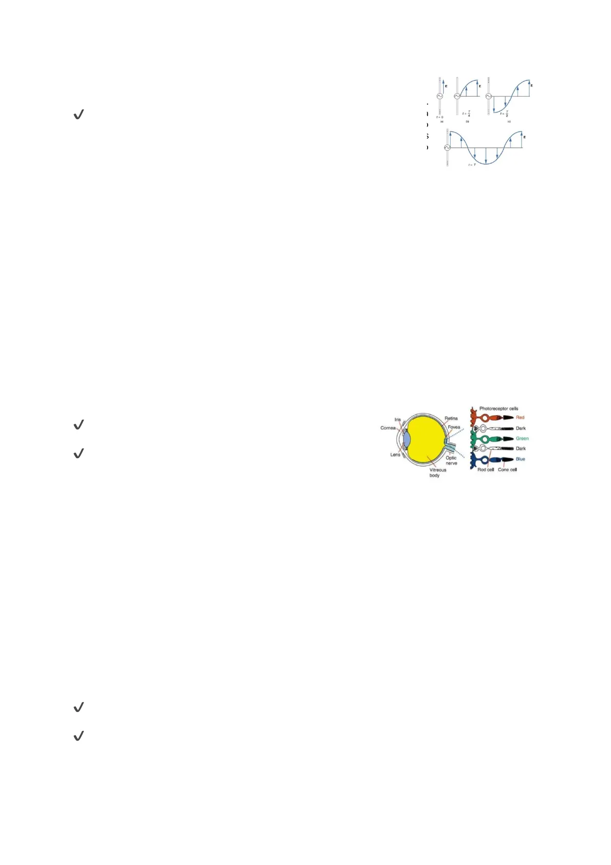 Photoreceptor cells Retina Red Iris Fovea Dark Green Dark Lens Blue Optic nerve Vitreous body Rod cell Cone cell Sin embargo, hay ondas que nuestro ojo no puede ver: - Luz ultravioleta (UV): Tiene demasiada energía y es filtrada por el cristalino antes de llegar a la retina. - Luz infrarroja (IR): Puede atravesar la lente del ojo, pero no tiene suficiente energía para activar los fotorreceptores. El ojo humano bloquea las ondas de longitud corta (UV) porque pueden ser dañinas para las células. Por otro lado, las ondas de longitud larga (IR) no se perciben porque no activan los receptores visuales.