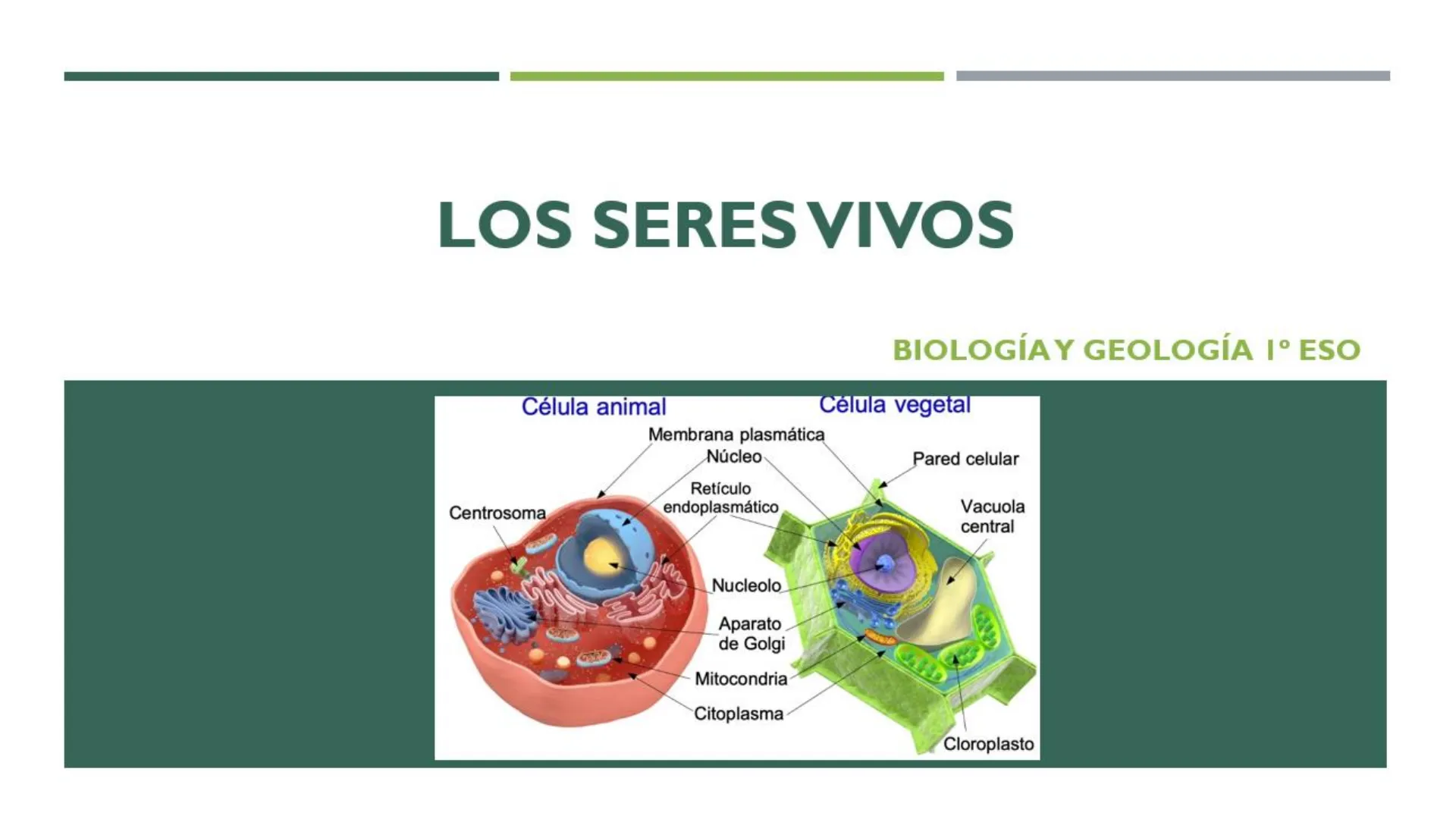 Célula animal Célula vegetal Membrana plasmática Núcleo Pared celular Retículo endoplasmático Centrosoma Vacuola central Nucleolo Aparato de Golgi Mitocondria Citoplasma CloroplastoBLOQUE 2 LOS SERES VIVOS