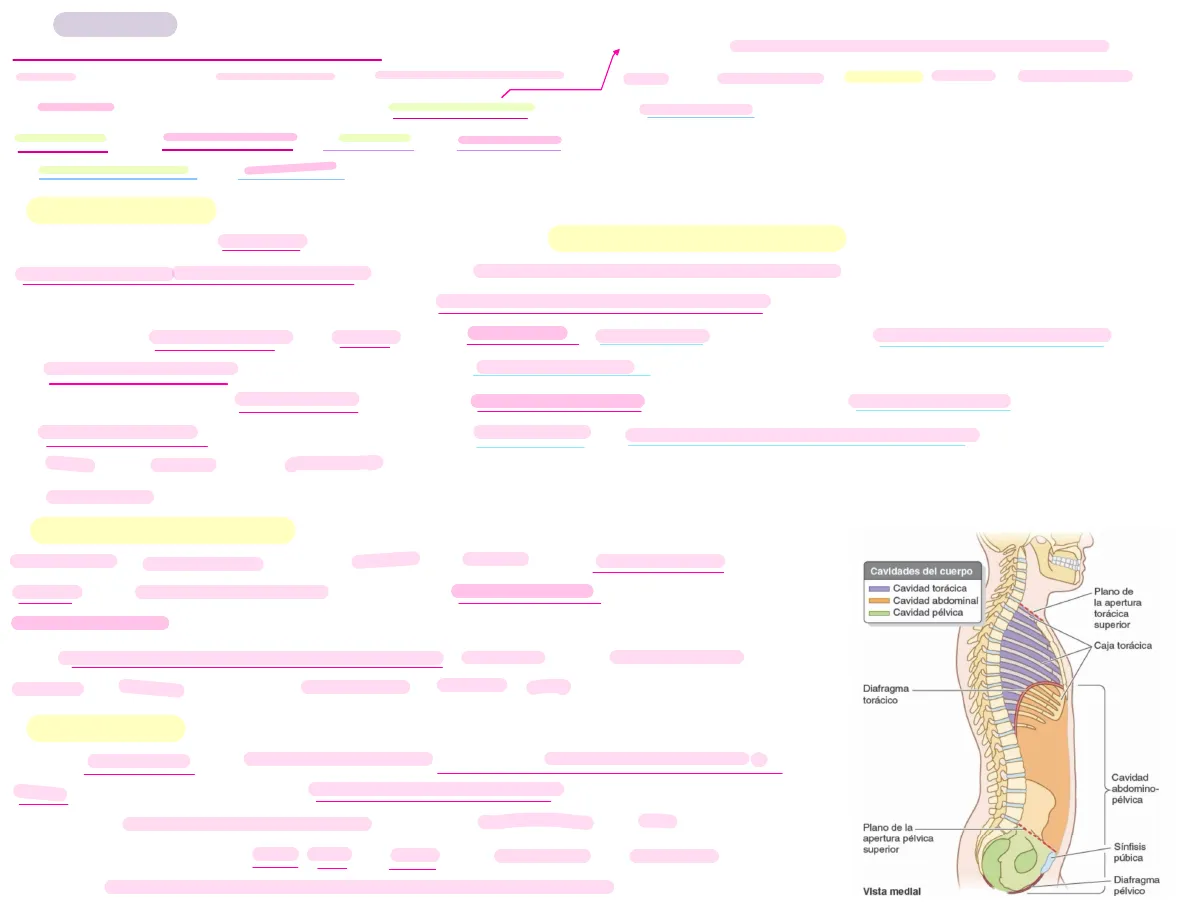 Plano de la apertura torácica superior Caja torácica Diafragma torácico Cavidad abdomino- pélvica Plano de la apertura pélvica superior Sínfisis púbica Vista medlal Diafragma pélvico