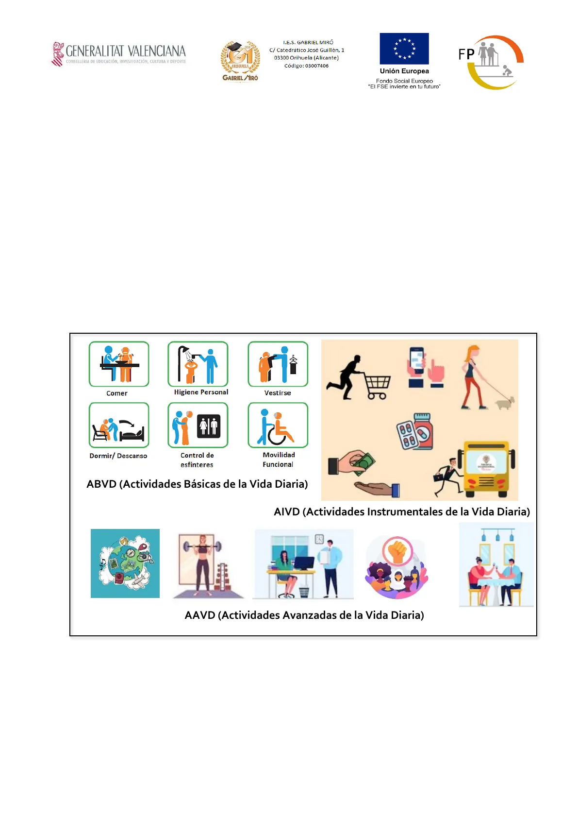 Como hemos dicho en la introducción, en esta unidad de trabajo vamos a analizar las habilidades implicadas en las actividades de autocuidado (ABVD), y en las de organización de la vida cotidiana (AIVD)