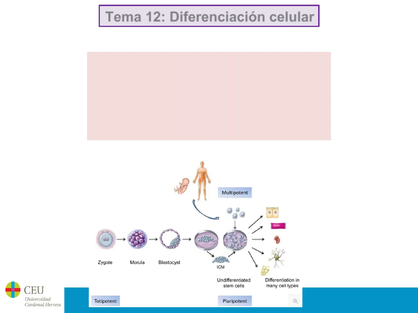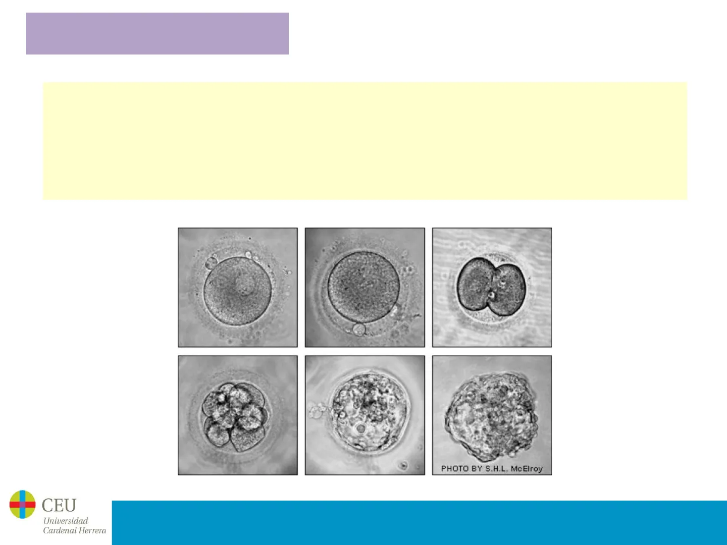 Multipotent O O 1 Zygote Morula Blastocyst ICM Undifferentiated stem cells Differentiation in many cell types CEU Universidad Cardenal Herrera Totipotent Pluripotent 1Introducción Un animal comienza su vida como una sola célula: un óvulo fecundado o cigoto. Durante el desarrollo, esta célula se divide repetidamente para producir muchos tipos diferentes de células dispuestas en un patrón final de complejidad y precisión. La biología celular del desarrollo estudia los mecanismos celulares y moleculares detrás de estas transformaciones celulares. PHOTO BY S.H.L. MoElroy CEU Universidad Cardenal Herrera