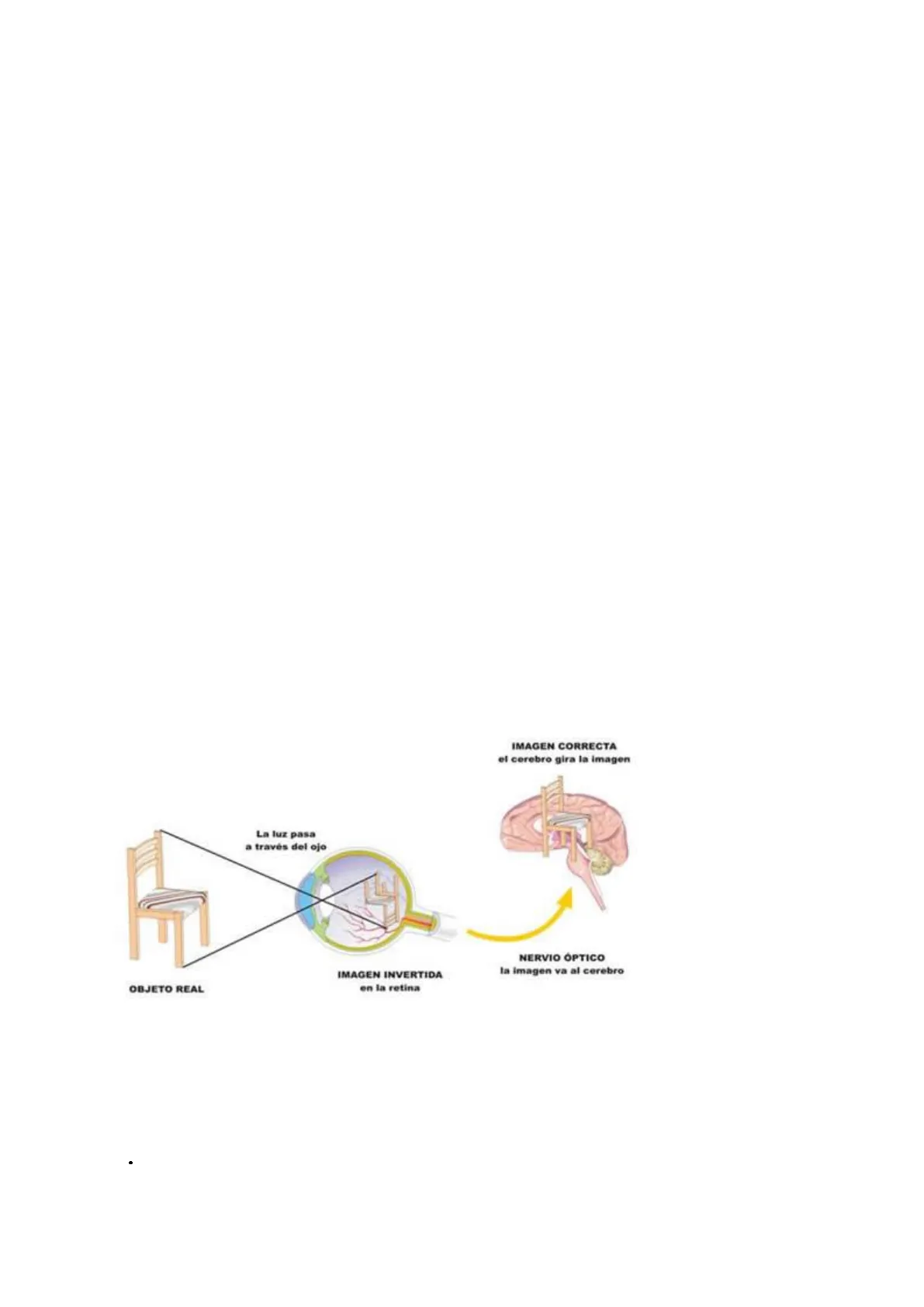 IMAGEN CORRECTA el cerebro gira la imagen La luz pasa a través del ojo NERVIO ÓPTICO la imagen va al cerebro IMAGEN INVERTIDA en la retina OBJETO REAL Mecanismo de la visión humana. La visión se realiza en cuatro fases: