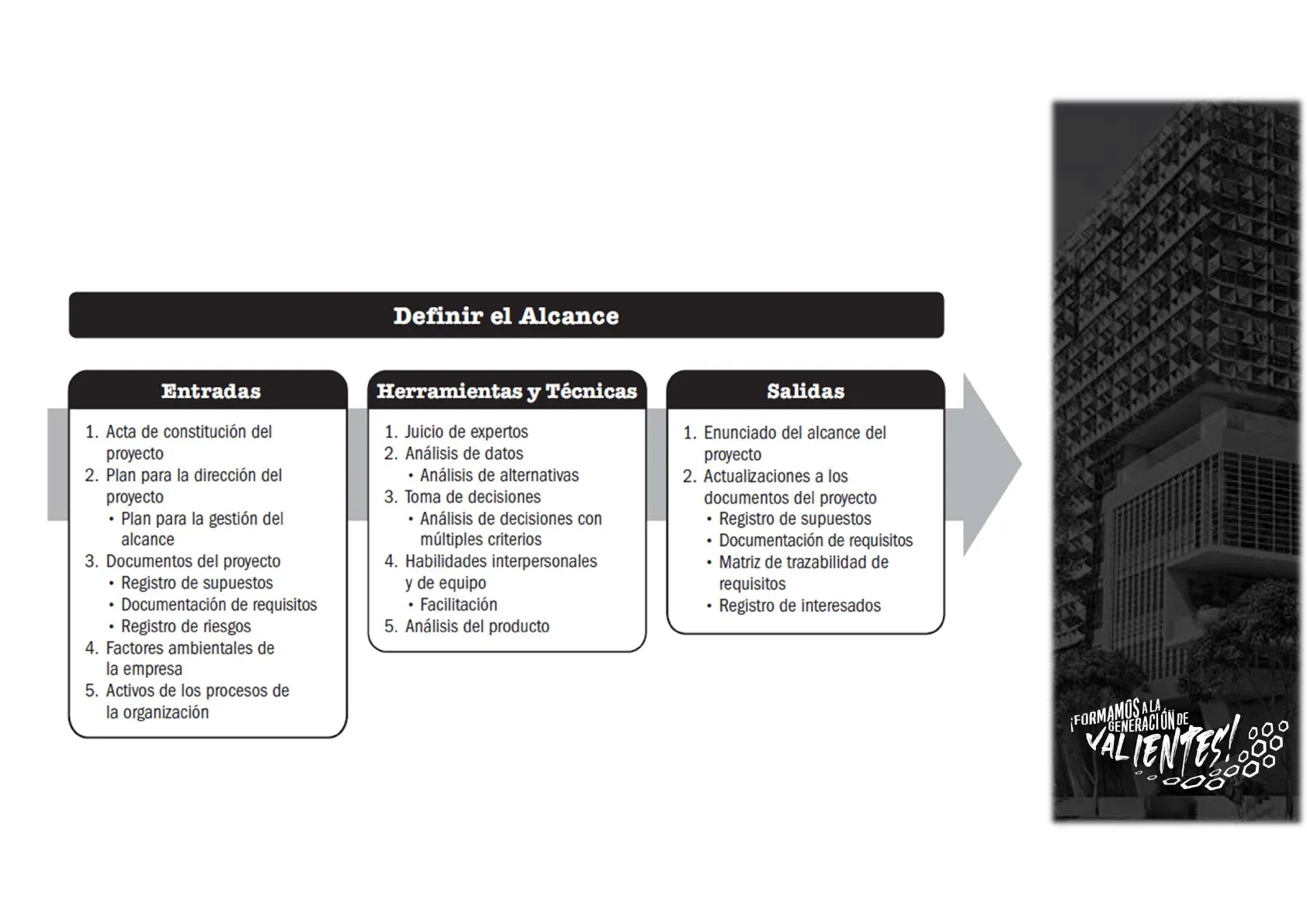 Salidas Importantes Línea base del alcance (alcance, EDT, diccionario EDT, paquete de trabajo y de planificación)