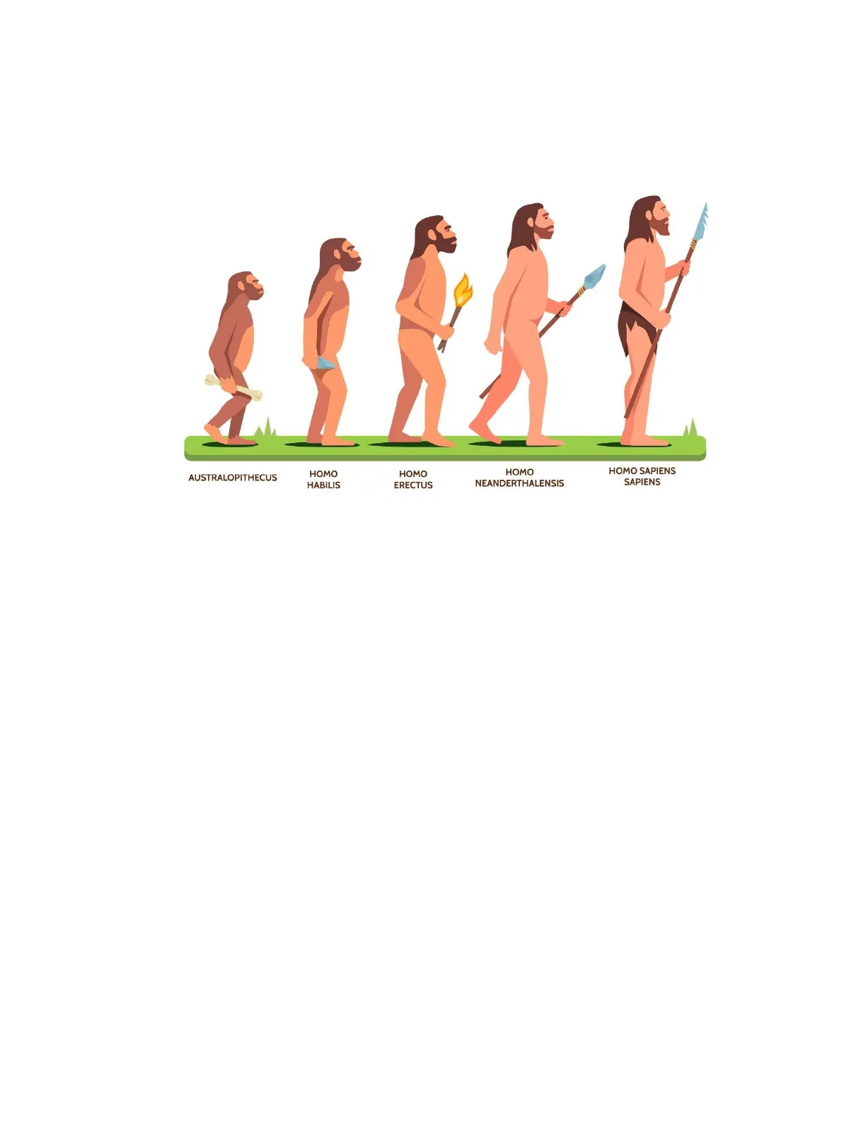AUSTRALOPITHECUS HOMO HABILIS HOMO ERECTUS HOMO NEANDERTHALENSIS HOMO SAPIENS SAPIENS