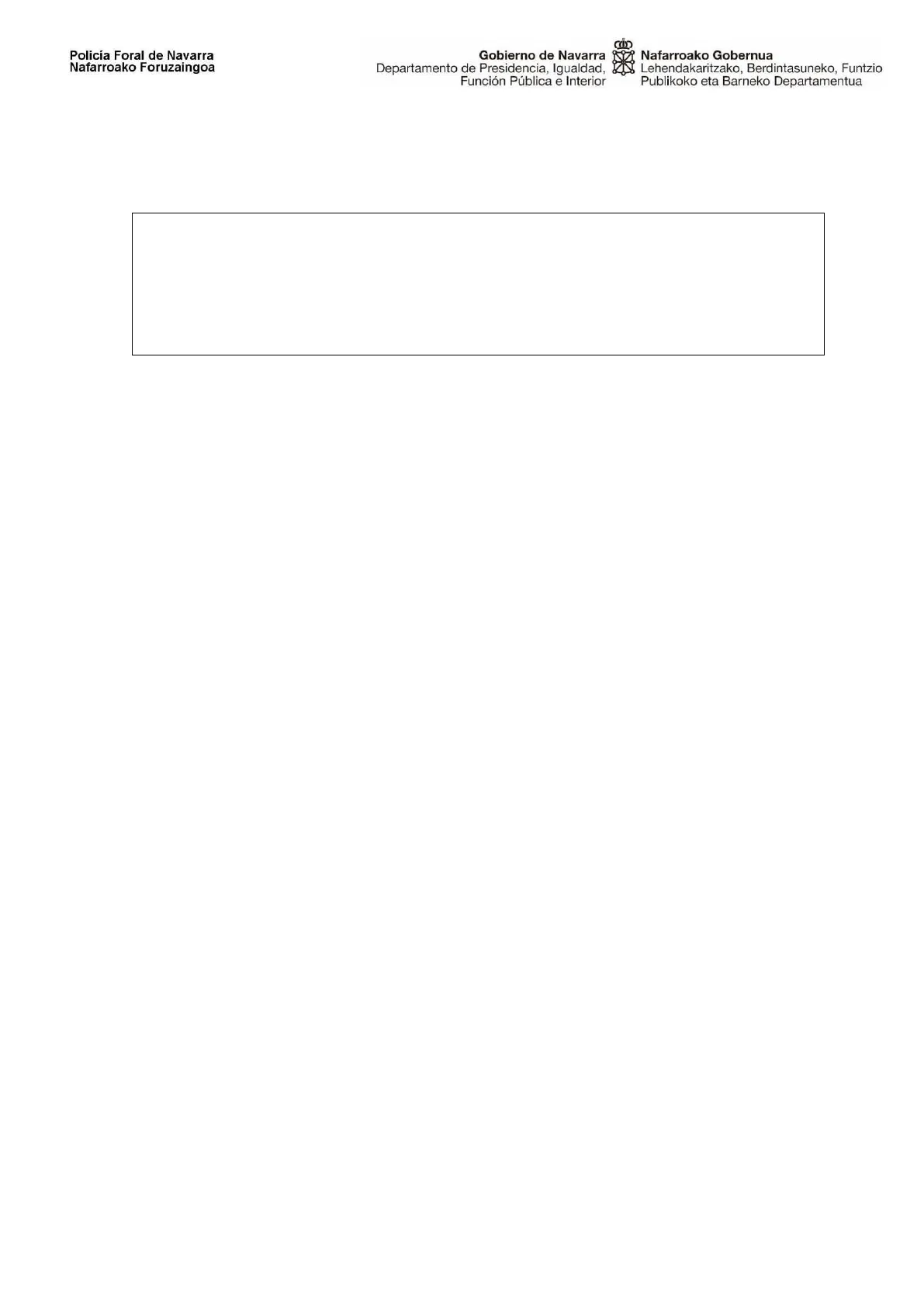 Nafarroako Foruzaingoa Gobierno de Navarra Departamento de Presidencia, Igualdad, Función Pública e Interior Nafarroako Gobernua