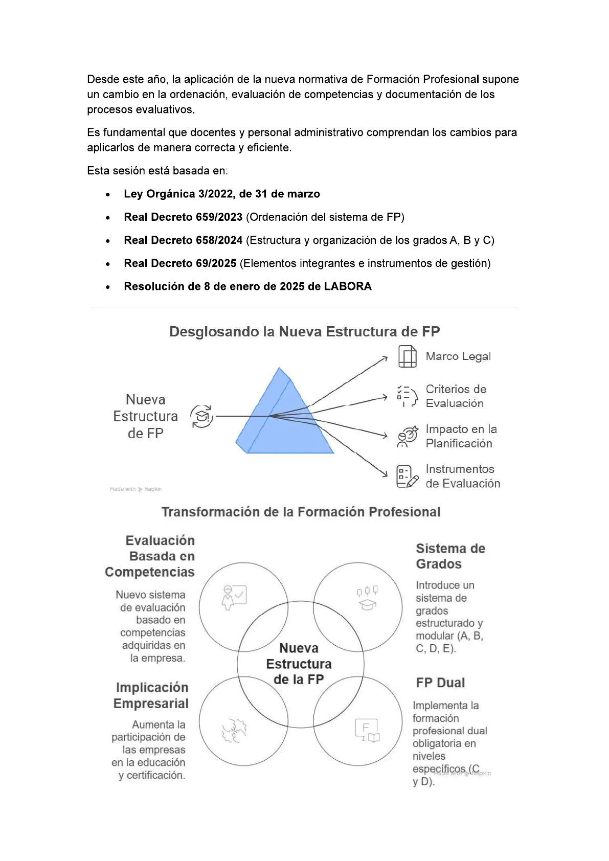 7 Marco Legal Nueva Estructura de FP 7 Criterios de Evaluación Impacto en la Planificación Instrumentos de Evaluación Made with @ Napkin