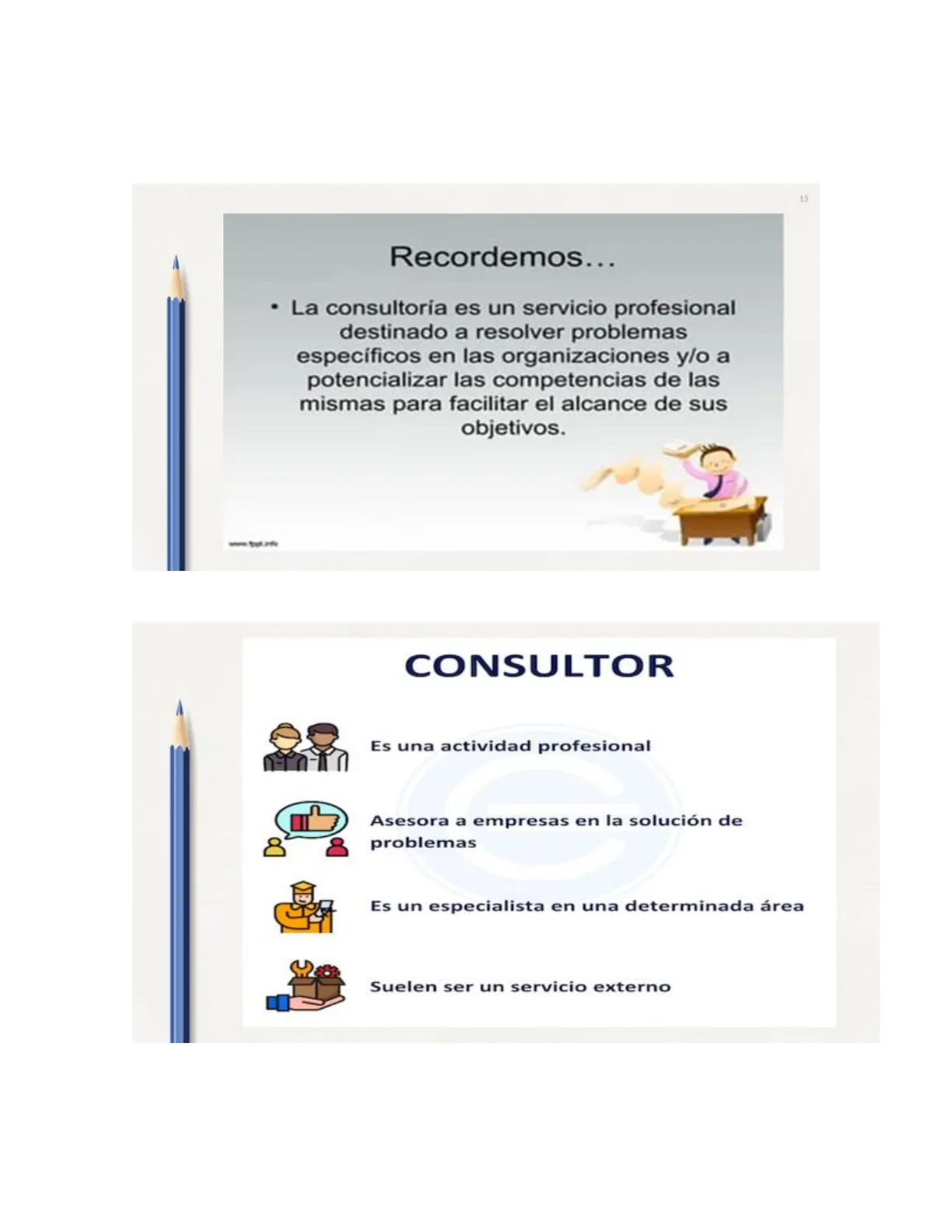 Recordemos ... · La consultoría es un servicio profesional destinado a resolver problemas específicos en las organizaciones y/o a potencializar las competencias de las mismas para facilitar el alcance de sus objetivos.