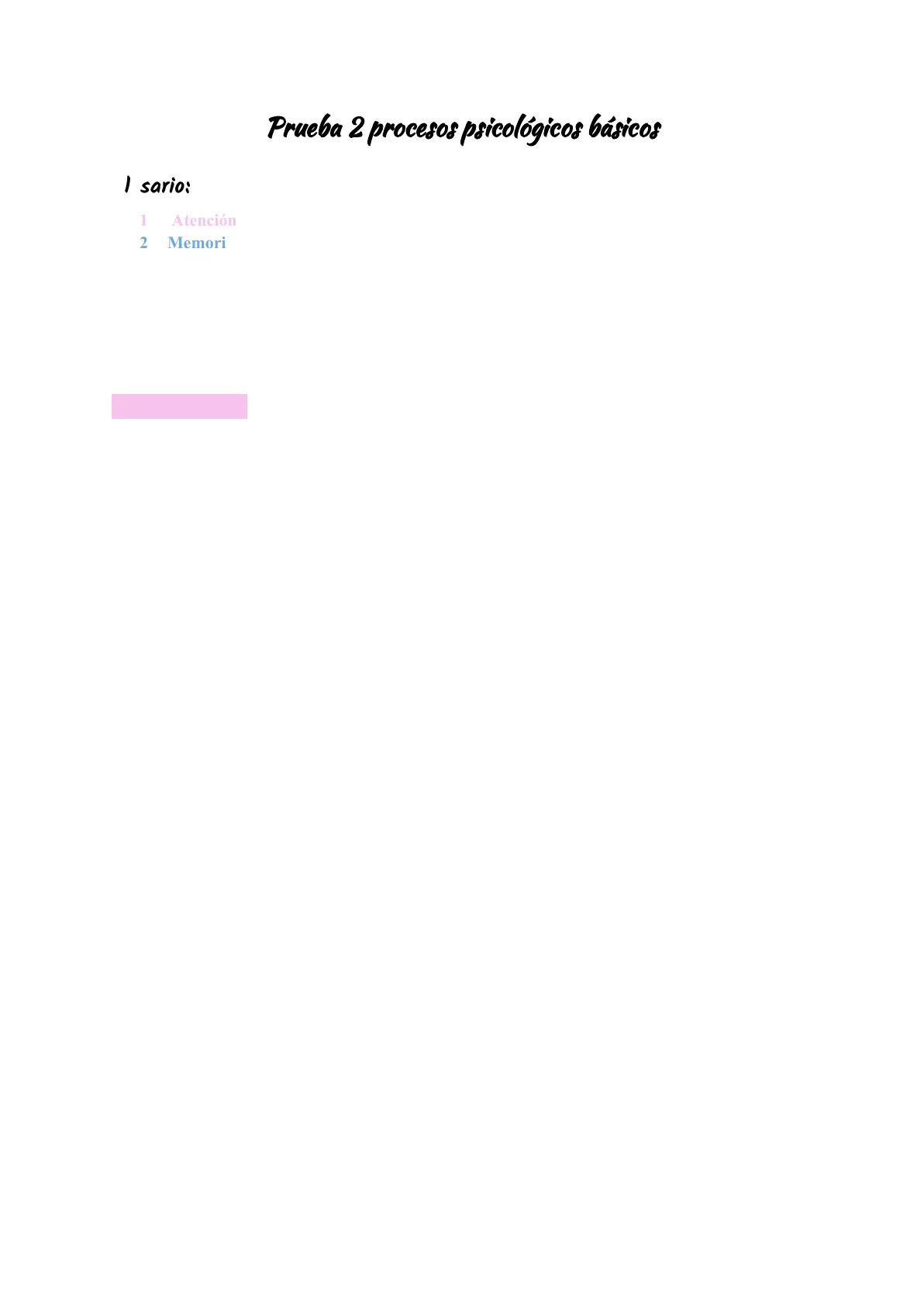 Documento de Universidad sobre Prueba 2 procesos psicológicos básicos. El Pdf explora los procesos psicológicos de atención, memoria, aprendizaje y razonamiento, con teorías de William James, Michael Gazzaniga y Carboni y Barg, útil para estudiantes de Psicología.
