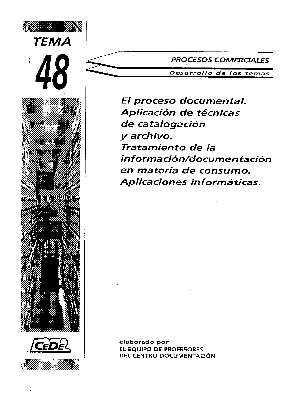 Documento de Cede sobre el proceso documental, aplicación de técnicas de catalogación y archivo, y tratamiento de la información. El Pdf aborda el proceso documental, las técnicas de catalogación y archivo, y el tratamiento de la información en materia de consumo, incluyendo aplicaciones informáticas, útil para oposiciones.