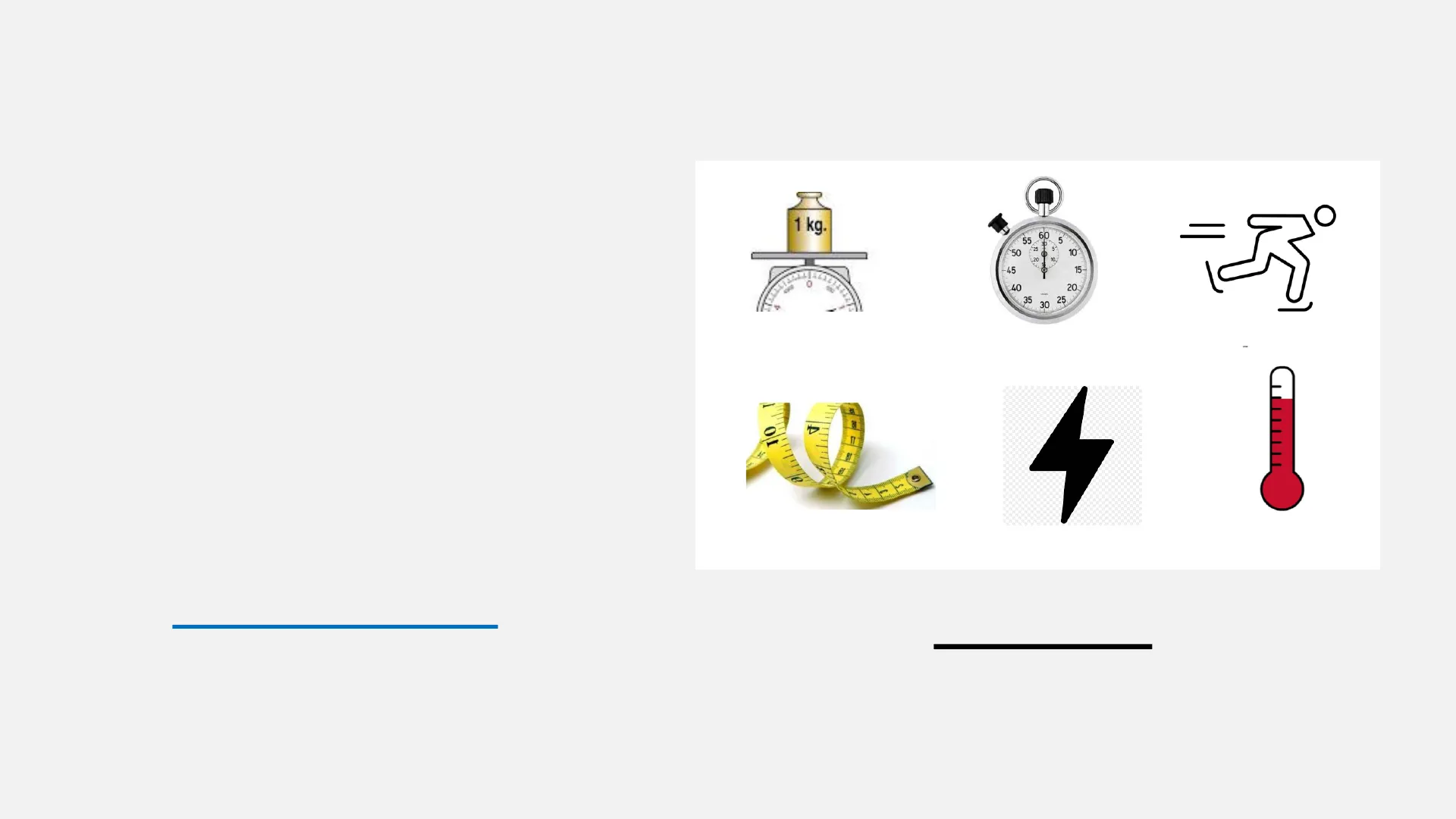 Masa Tiempo Velocidad Longitud Energía Temperatura Densidad Aceleración Cant.Sustancia Presión