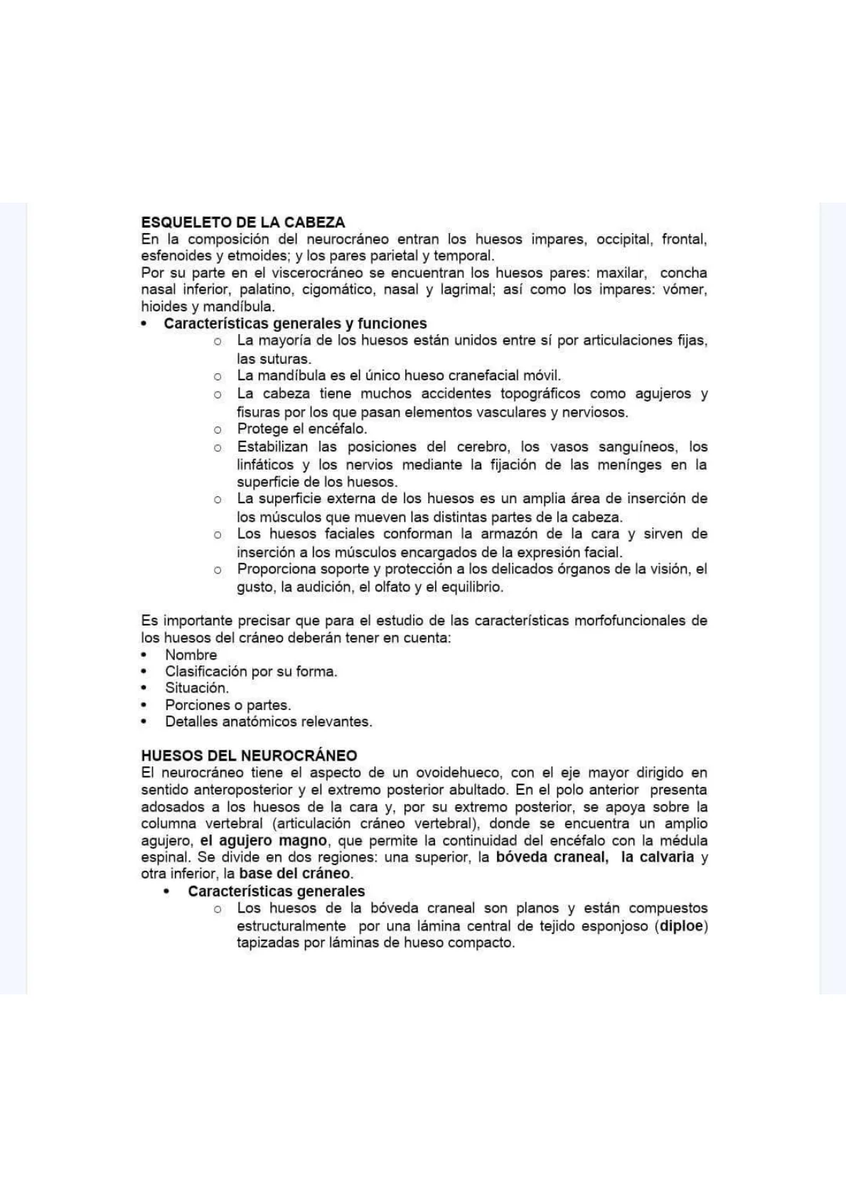 Es importante precisar que para el estudio de las características morfofuncionales de los huesos del cráneo deberán tener en cuenta: