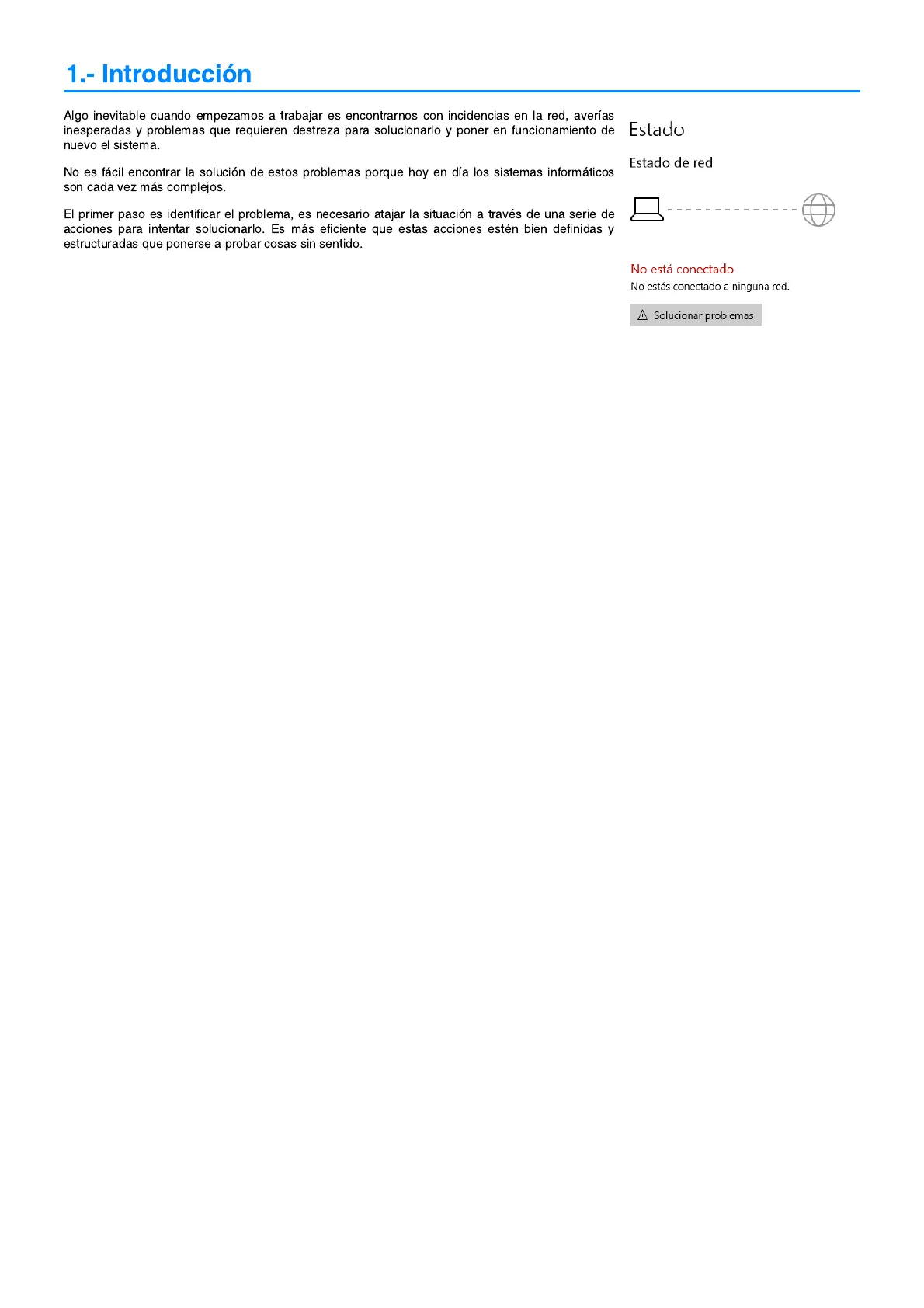 Estado Estado de red No es fácil encontrar la solución de estos problemas porque hoy en día los sistemas informáticos son cada vez más complejos. El primer paso es identificar el problema, es necesario atajar la situación a través de una serie de acciones para intentar solucionarlo. Es más eficiente que estas acciones estén bien definidas y estructuradas que ponerse a probar cosas sin sentido.