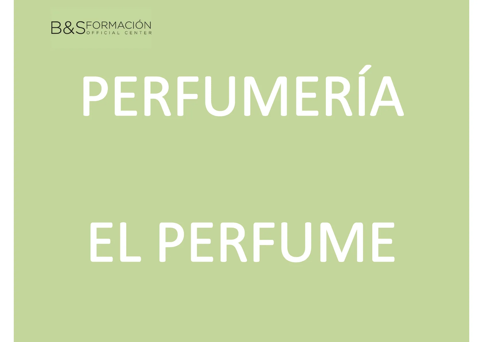 Diapositivas de B&sformación Official Center sobre Perfumería el Perfume. El Pdf explora el mundo de la perfumería, centrándose en los ingredientes y materias primas de origen vegetal y animal, útil para Formación profesional.