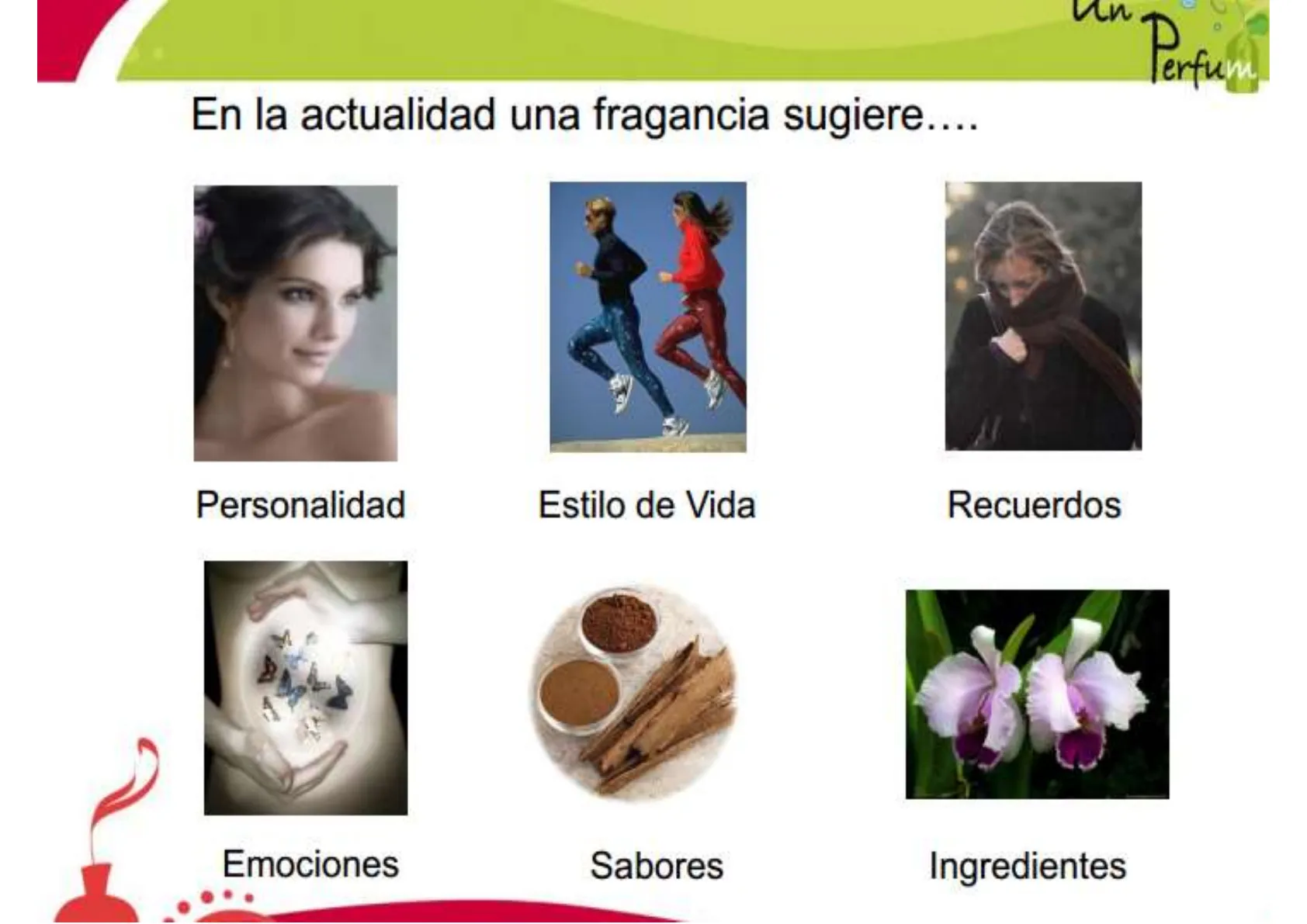 El término de familia olfativa se refiere a qué tipo de aroma predomina en cada uno de los perfumes, es decir, qué tanto huela una fragancia a maderas, flores o frutas, etc.